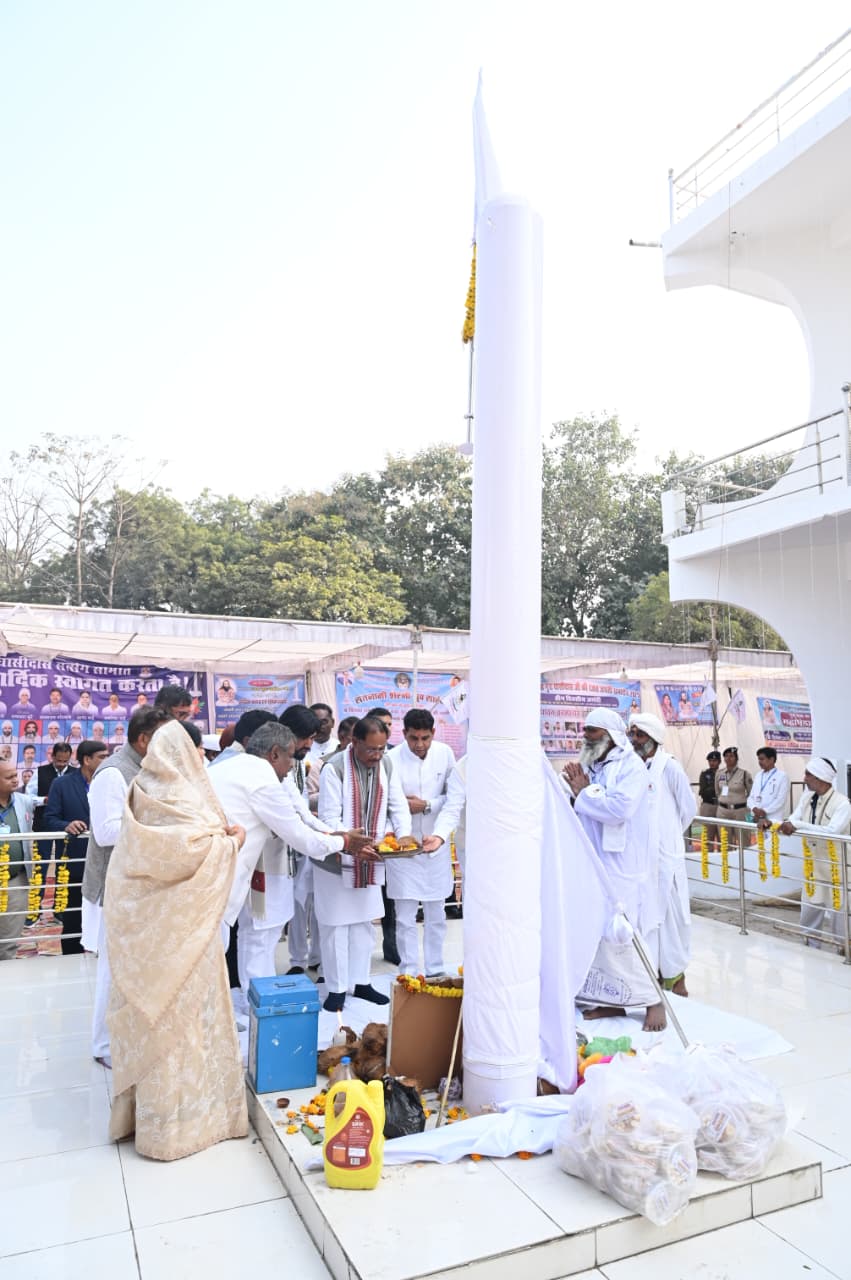 सारंगढ़, 20 दिसम्बर 2025। मुख्यमंत्री श्री विष्णुदेव साय शनिवार को सारंगढ़ स्थित गुरु घासीदास ज्ञान स्थली, पुष्पवाटिका में आयोजित तीन दिवसीय संत गुरु घासीदास रजत जयंती समारोह के समापन अवसर पर मुख्य अतिथि के रूप में शामिल हुए। मुख्यमंत्री ने ज्ञान स्थली में स्थापित जैतखाम में विधिवत पूजा-अर्चना कर प्रदेश की सुख-शांति, समृद्धि और खुशहाली की कामना की।