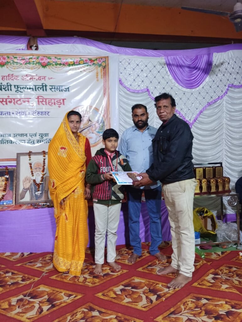 समारोह के अंतिम चरण में प्रतिभाशाली एवं सर्वोच्च अंक प्राप्त बच्चों को प्रशंसा पत्र के साथ स्मृति चिन्ह सजातीय युवा संगठन द्वारा प्रदान किए गए। कार्यक्रम का संचालन निर्माण समिति अध्यक्ष शरद मालाकार ने किया इस अवसर पर समाज के वरिष्ठ मिश्रीलाल मालाकार, लच्छू जी मालाकार, राधेश्याम मालाकार, युवा संगठन सचिव घनश्याम मालाकार, शिवम मालाकार के साथ बड़ी संख्या में समाज जन उपस्थित थे।
