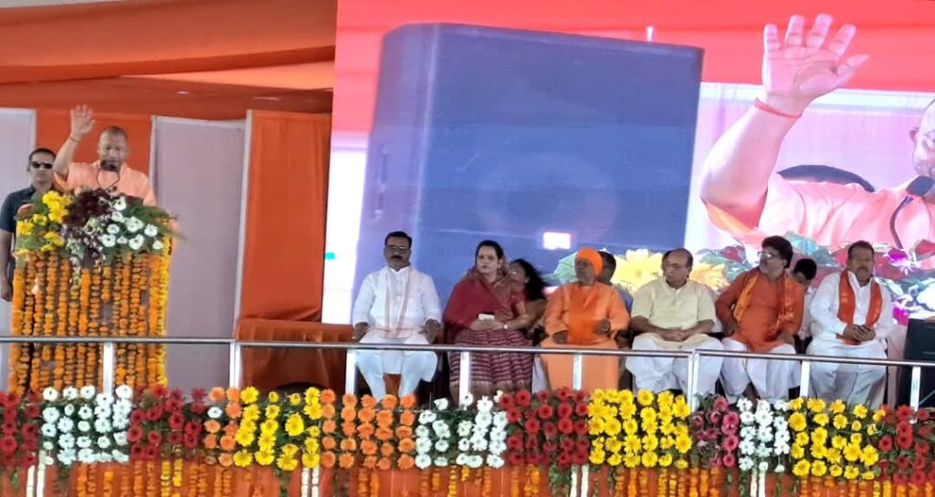 कार्यक्रम में मुख्यमंत्री योगी आदित्यनाथ ने जनसभा को संबोधित किया।