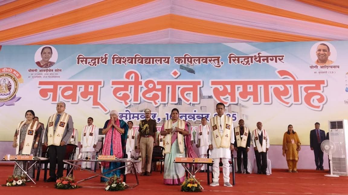 सिद्धार्थ विश्वविद्यालय, कपिलवस्तु, सिद्धार्थनगर में रविवार को नवम दीक्षांत समारोह बड़े ही गरिमामय वातावरण में सम्पन्न हुआ। कार्यक्रम में प्रदेश की राज्यपाल श्रीमती आनंदीबेन पटेल मुख्य अतिथि के रूप में शामिल हुईं।