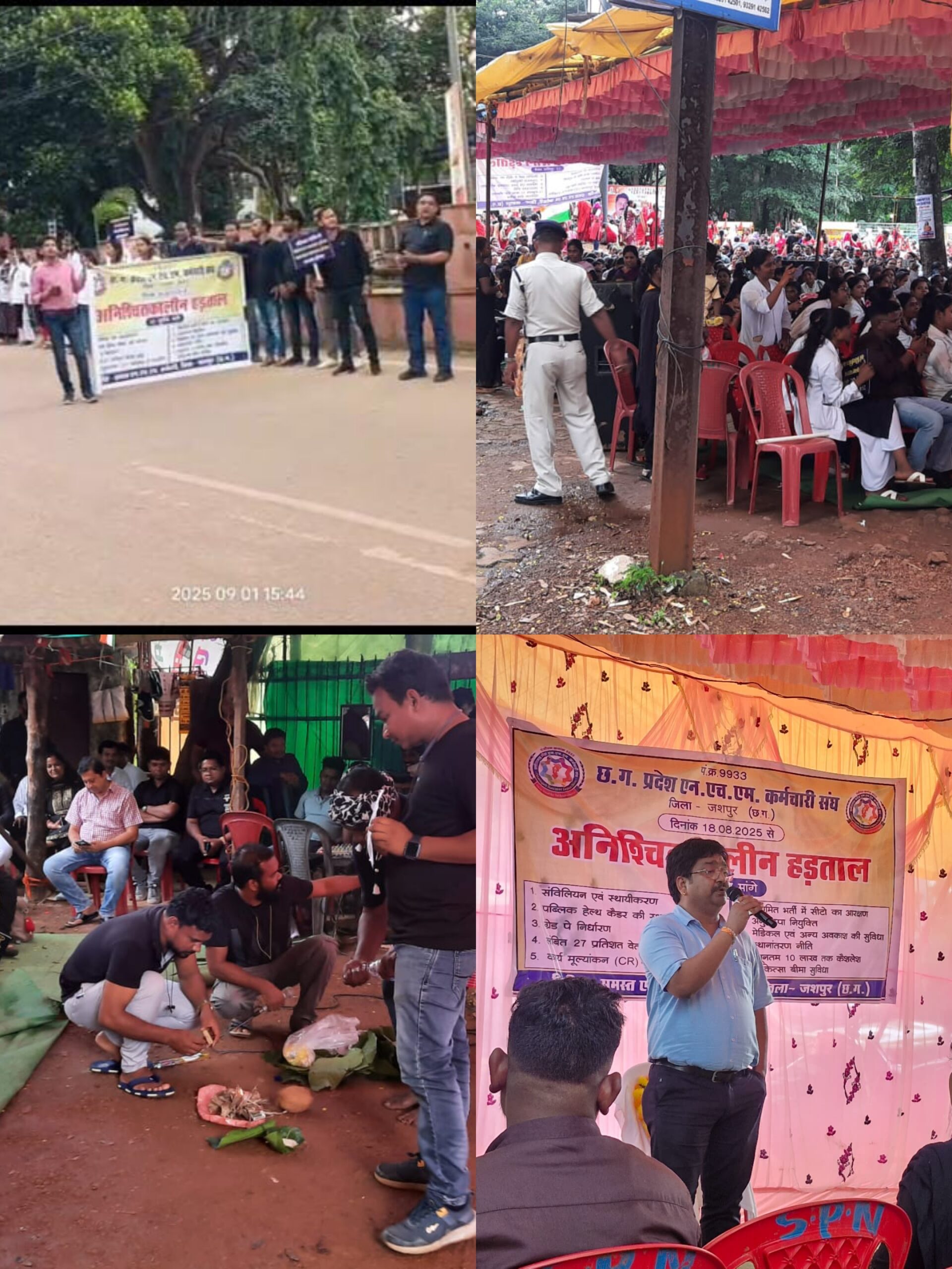 आज एनएचएम कर्मचारियों ने अनोखा प्रदर्शन करते हुए छत्तीसगढ़ कि पारंपरिक झाड़ फूँक पद्धति के सहारे प्रदेश के माननीय मुख्यमंत्री श्री विष्णु देव साय, स्वास्थ्य मंत्री श्री श्याम बिहारी जायसवाल, वित्त मंत्री श्री ओ. पी. चौधरी के साथ साथ स्वास्थ्य विभाग के जिम्मेदार पदो पर आसीन प्रशासनिक अधिकारियों को नींद से जगाने का प्रयास किया। और उम्मीद जताई कि शायद हमारे इस प्रयास से शासन के जिम्मेदार मंत्री व प्रशासनिक अधिकारियों तक हमारी समस्याएं और मांग उन तक पहुंचे। और उनकी तरफ से हमारे पक्ष मे कोई पहल हो।