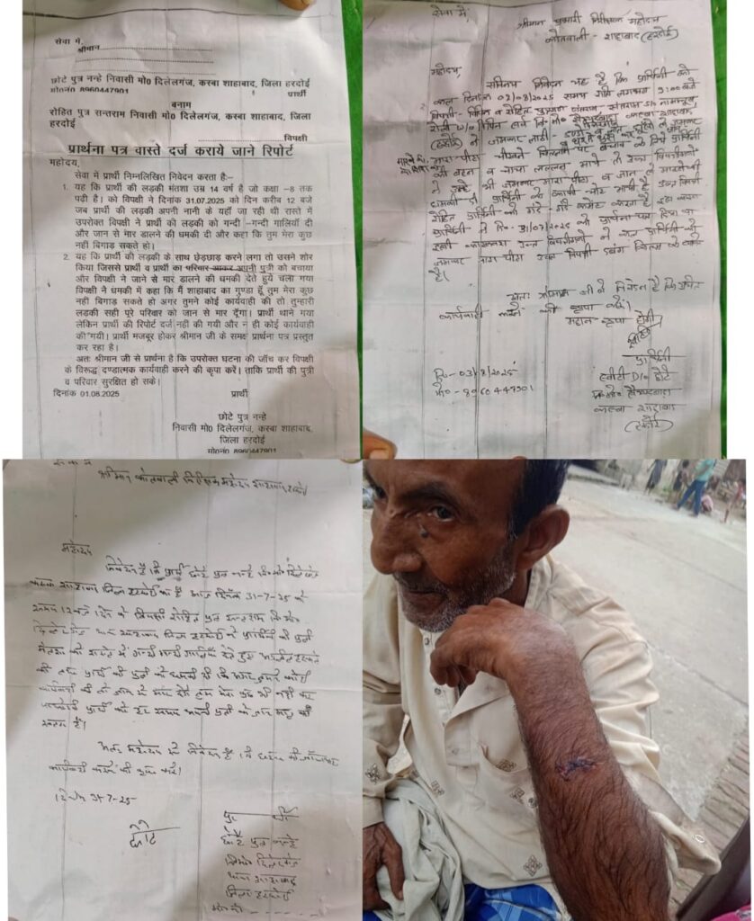 हरदोई जनपद के थाना शाहाबाद के मोहल्ला सैय्यदबाड़ा की पीड़िता को नहीं मिल रहा न्याय पीड़िता ने आरोप लगाया कि वह 31. 07.2025 को अपनी नानी के घर जा रही थी रास्ते में विपक्षी ने पीड़ित को रोक कर उसके साथ छेड़छाड़ करने लगा पीड़ित ने शोर मचाया तो उसके परिवार के लोग मौके पर पहुंच कर बचाया विपक्षी ने धमकी की तुम मेरा कुछ नहीं बिगाड़ पाओगी गाली गलौज करने लगे कहा कि अगर तुमने कोई कार्यवाही की तो तुम्हे और तुम्हारे परिवार को जान से मर देंगे पीड़िता थाने गई लेकिन उसकी रिपोर्ट लिखी गई लेकिन कोई कार्यवाही नहीं हुई जब विपक्षी को पता चला कि पीड़िता थाने में रिपोर्ट करने गई है तो विपक्षी 2.08.2025 को रात समय 9 बजे विपिन व रोहित और रोली अन्य लोगों ने पीड़िता के घर लाठी व डंडे और लोहे की रॉड से घर का गेट तोड़कर हमला कर दिया पीड़ित की चीख पुकार सुनकर पीड़िता की बहन व चाचा लल्लन बचाने के लिए आए तो विपक्षी ने जमकर पीड़िता और उसके परिवार पर लाठी डंडे व रॉड चलाए जिससे पीड़िता को और पीड़िता के परिवार बालों को काफी चोटे आई है पीड़िता ने बताया कि विपक्षी काफी दबंग लोग है पीड़िता के ऊपर 2.08.2025 को हमला हुआ था लेकिन अभी तक पीड़िता को न्याय नहीं मिला पुलिस प्रशासन नहीं सुन रहा पीड़िता की गुहार।