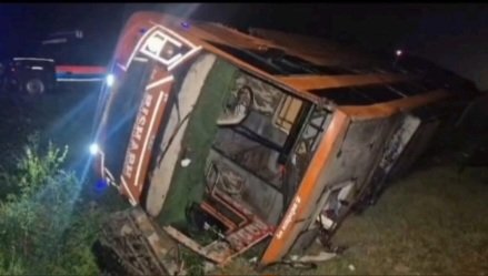 हाथरस सिकंदराराऊ बुधवार तड़के करीब 3:30 बजे कानपुर-दिल्ली हाईवे पर गांव इकबालपुर के पास एक बड़ा सड़क हादसा टल गया। गुड़गांव से फर्रुखाबाद जा रही एक निजी डबल डेकर बस (AR 11C 4515) तेज बारिश और फिसलन के कारण अनियंत्रित होकर सड़क किनारे खाई में पलट गई। बस में करीब 30-32 यात्री सवार थे। हादसे में पति-पत्नी समेत कुछ यात्रियों को मामूली चोटें आईं। गनीमत रही कि कोई जनहानि नहीं हुई। सूचना मिलते ही पुलिस प्रशासन, क्षेत्राधिकारी जे.एन. अस्थाना और कोतवाली प्रभारी शिव कुमार शर्मा व फायर ब्रिगेड की टीम मौके पर पहुंची। घायलों को तुरंत एंबुलेंस से सामुदायिक स्वास्थ्य केंद्र (CHC) भेजा गया।