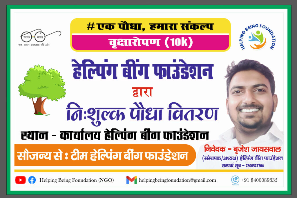 हेल्पिंग बिंग फाउंडेशन द्वारा पौधा वितरण कार्यक्रम का आयोजन