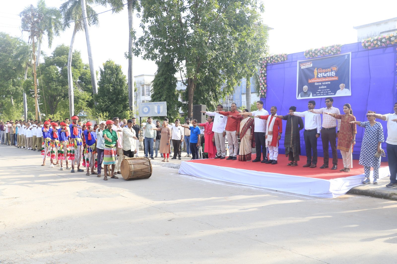 પ્રધાનમંત્રીશ્રી નરેન્દ્રભાઈ મોદીના સુશાસનના ૨૪ વર્ષ પૂર્ણ થતા ગુજરાતભરમાં “વિકાસ સપ્તાહ” ઉજવણીનો માહોલ સર્જાયો છે. પ્રધાનમંત્રીશ્રીના અવિરત માર્ગદર્શન અને વિઝન હેઠળ ગુજરાતે છેલ્લા બે દાયકાથી વધુ સમયગાળામાં સર્વાંગી વિકાસની હરણફાળ ભરી છે. રાજ્ય સરકાર મુખ્યમંત્રી ભૂપેન્દ્ર પટેલના નેતૃત્વ હેઠળ આ વિકાસયાત્રાને જનજન સુધી પહોંચાડવા ૭ થી ૧૫ ઓક્ટોબર, ૨૦૨૫ દરમિયાન “વિકાસ સપ્તાહ” ઉજવણી કરવામાં આવી રહી છે. વિકાસ સપ્તાહ – ૨૦૨૫ અંતર્ગત ઉપસ્થિત સૌ મહાનુભાવીએ વિકસિત ભારતની સામૂહિક પ્રતિજ્ઞા લીધી હતી. કલેકટર કચેરી ખાતેથી નીકળેલ વિકાસ પદયાત્રાને સાંસદ જશુભાઈ રાઠવા, જિલ્લા કલેકટર ગાર્ગી જૈન, પોલીસ અધિક્ષક ઇમ્તિયાઝ શેખ, જિલ્લા વિકાસ અધિકારી સચિન કુમાર, પ્રાયોજના વહીવટદાર કલ્પેશ શર્મા, મદદનીશ કલેક્ટર મુસ્કાન ડાગર, નગર પાલિકા પ્રમુખ મંજુલાબેન કોલીએ લીલીઝંડી આપી પ્રસ્થાન કરાવી હતી. આ પદયાત્રા કલેકટર કચેરી થી ગાંધીચોક, માણેક ચોક, પેટ્રોલ પંપ ચોકડી થી કલેક્ટર કચેરી પરત હતી. આ યાત્રામાં મોટી પોલીસ જવાનો, સરકારી અધિકારીશ્રીઓ, કર્મચારીઓ તથા નાગરિકોએ ઉત્સાહપૂર્વક જોડાયા હતા.