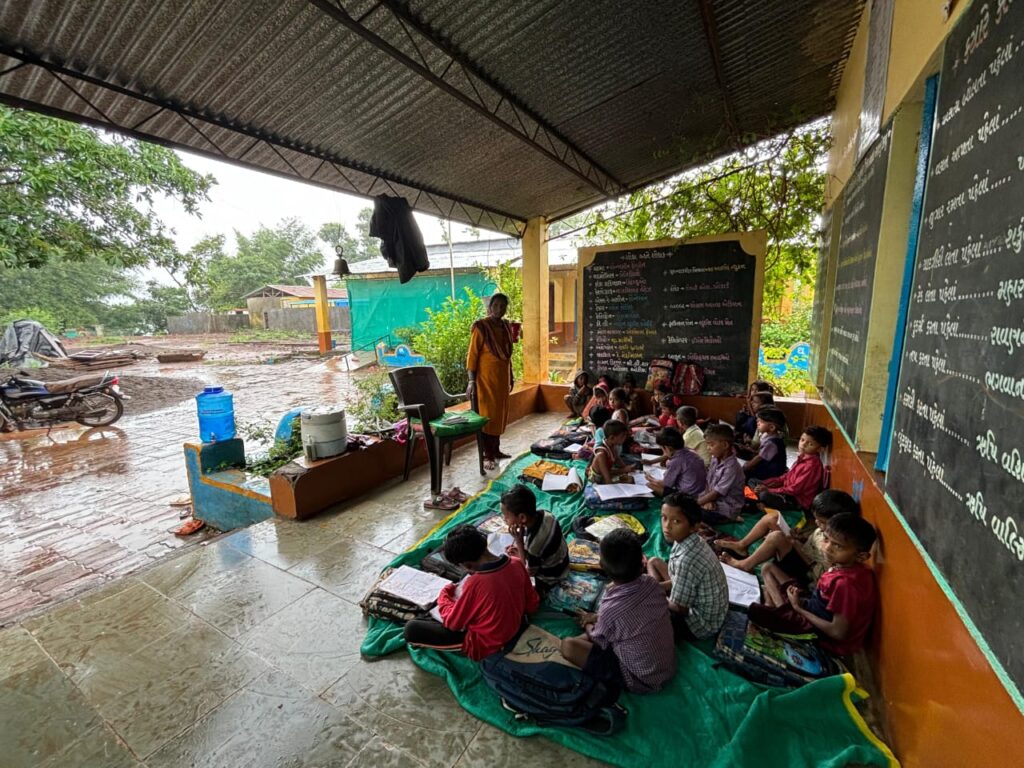 એક તરફ રાજ્ય સરકાર આદિવાસી બાળકોને શિક્ષણની ભૂખ ઉગાડવા શાળા પ્રવેત્સોવની ઉજવણી કરે છે,જયારે ૩૧૧ ગામોમાં ૩૭૭ પ્રાથમિક શાળાઓ આવી છે.જેમાંથી ૮૦થી વધુ શાળાઓમાં ઓરડાની ઘટ હોય વિદ્યાર્થીઓનું ભાવિ અંધકારમય બની ગયુ છે. રાજ્યનું ચેરાપુંજી ગણાતું ડાંગ જિલ્લામાં ધોધમાર વરસાદ ખબકતો હોય છે ,તેવા સંજોગોમાં ડાંગ જિલ્લાની મહતમ પ્રાથમિક શાળાઓમાં મહેકમની ઘટ સાથે અપૂરતા ઓરડાઓને પગલે આદિવાસી વિદ્યાર્થીઓને પાયાનું શિક્ષણ મેળવવા ફાંફા પડી રહ્યા છે. વઘઇ તાલુકાની વાત કરીએ તો મહારાષ્ટ્ર સરહદ પાસે આવેલ મોટામાળુંગા ગામે ધો ૧ થી ૮ સુધી શાળામાં ૧૪૩ વિદ્યાર્થીઓ અભ્યાસ કરે છે.જેમાં ૧૦ ઓરડાઓમાંથી ૫ ઓરડાઓ જર્જરીત હોય તોડી પાડવામાં આવ્યા છે. જે ૧લી જાન્યુઆરી એ કાટમાળ પણ ખસેડી લેવાયો છતાં સ્કૂલનો પાયો પણ ન બનાવતા હાલ આદિવાસી વિદ્યાર્થીઓ વરસતા વરસાદમાં ઓટલા પર અને સાંકડા ઓરડામાં ઘેટાં બકરાની માફક ખીચોખીચ બેસાડી અભ્યાસ કરવા મજબુર બન્યા છે.આ સાથે જ વઘઇ તાલુકામાં ૩૫ જેટલી શાળાઓમાં ઓરડાઓની ઘટને પગલે બાળકોની સ્થિતિ દયનિય બની છે. આહવા તાલુકામાં પણ ૩૦ થી વધુ પ્રાથમિક શાળાઓમાં પૂર્વ આયોજન વગર ઓરડાઓ તોડી પાડ્યા બાદ બાંધકામની શરૂઆત ન થતા હાલ ચોમાસામાં ગંભીર પરિસ્થિતિ નિર્માણ થઈ છે.તો બીજી તરફ ડાંગ જિલ્લાના છેવાડે આવેલ સુબીર તાલુકામાં પણ ૨૦ શાળાઓમાં જર્જરીત થયેલ ઓરડાઓ તોડી પાડ્યા બાદ હાલ ટેન્ડર પ્રક્રિયા પૂર્ણ થયેલ ન હોય આદિવાસી વિદ્યાર્થીઓનો ભવિષ્ય અધ્ધરતાલ બની જવા પામ્યો છે.તેવા સંજોગો તંત્ર સરકારી નાણાંનો ધુમાડો કરી ગરીબ આદિવાસીઓ સાથે મજાક ઉડાવી રહી છે, ડાંગ જિલ્લામાં ૧થી ૫ અને ૮ ધોરણ સુધી પ્રાથમિક શિક્ષણ અંતર્ગત આવે છે.