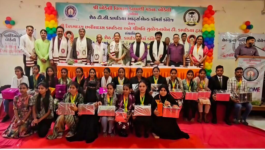 છોટાઉદેપુર જિલ્લાના બોડેલી ખાતે આવેલી બોડેલી વિભાગ કેળવણી મંડળ સંચાલિત શેઠ ટી.સી. કાપડિયા આર્ટ્સ એન્ડ કોમર્સ કોલેજ બોડેલીનો 62મો વાર્ષિકોત્સવ આજે ઉત્સાહભેર ઉજવાયો હતો. બોડેલી વિભાગ કેળવણી મંડળ બોડેલીના પ્રમુખ વર્ષાબેન કે. દલાલની અધ્યક્ષતામાં યોજાયો હતો. આ પ્રસંગે મુખ્ય મહેમાન તરીકે ગોવિંદ ગુરુ યુનિવર્સિટી, ગોધરાના રજીસ્ટ્રાર ડૉ. અનિલ સોલંકી ઉપસ્થિત રહ્યા હતા. ઉપરાંત કોલેજ ટ્રસ્ટના મંત્રી સુમનભાઈ પટેલ તેમજ ટ્રસ્ટીઓ અને અગ્રણીઓ પણ કાર્યક્રમમાં હાજર રહ્યા હતા. કાર્યક્રમની શરૂઆત કોલેજની વિદ્યાર્થીનીઓ દ્વારા પ્રાર્થના રજૂ કરીને કરવામાં આવી હતી. ત્યારબાદ કોલેજના આચાર્ય એચ. એમ. કોરાટે ઉપસ્થિત મહાનુભાવોનું શાબ્દિક સ્વાગત કરી પુષ્પગુચ્છ અર્પણ કરીને તેમનું સન્માન કર્યું હતું. આ અવસરે બોડેલી કોલેજનો વાર્ષિક અહેવાલ પ્રોફેસર વિપિનચંદ્ર સોલંકી દ્વારા રજૂ કરવામાં આવ્યો હતો. જ્યારે કોલેજમાં ચાલતી એલએલબી અને એલએલએમ કોર્સ અંગેનો પ્રગતિ અહેવાલ કોલેજની પ્રિન્સિપાલ શ્વેતાબેન પટેલ દ્વારા રજૂ કરવામાં આવ્યો હતો. વિદ્યાર્થીઓના સન્માન કાર્યક્રમમાં સૌપ્રથમ અર્થશાસ્ત્ર વિષયમાં એમ.એ. અભ્યાસ કરતી વિદ્યાર્થીની કુ. શર્મીબેન જીતિયાભાઈ રાઠવાએ સમગ્ર યુનિવર્સિટીમાં પ્રથમ સ્થાન મેળવી સુવર્ણચંદ્રક પ્રાપ્ત કરી કોલેજ તથા અધ્યાપકોનું ગૌરવ વધાર્યું હતું. શર્મીબેન રાઠવાનું ઉપસ્થિત મહાનુભાવો દ્વારા મેડલ તથા મોમેન્ટો આપી વિશેષ સન્માન કરવામાં આવ્યું હતું. કાર્યક્રમ દરમિયાન મુખ્ય મહેમાન ડૉ. અનિલ સોલંકીએ વિદ્યાર્થીઓને તેમની વિવિધ સિદ્ધિઓ બદલ અભિનંદન પાઠવી અભ્યાસ સાથે સંસ્કાર અને વ્યક્તિત્વ વિકાસ પર ભાર મૂક્યો હતો.