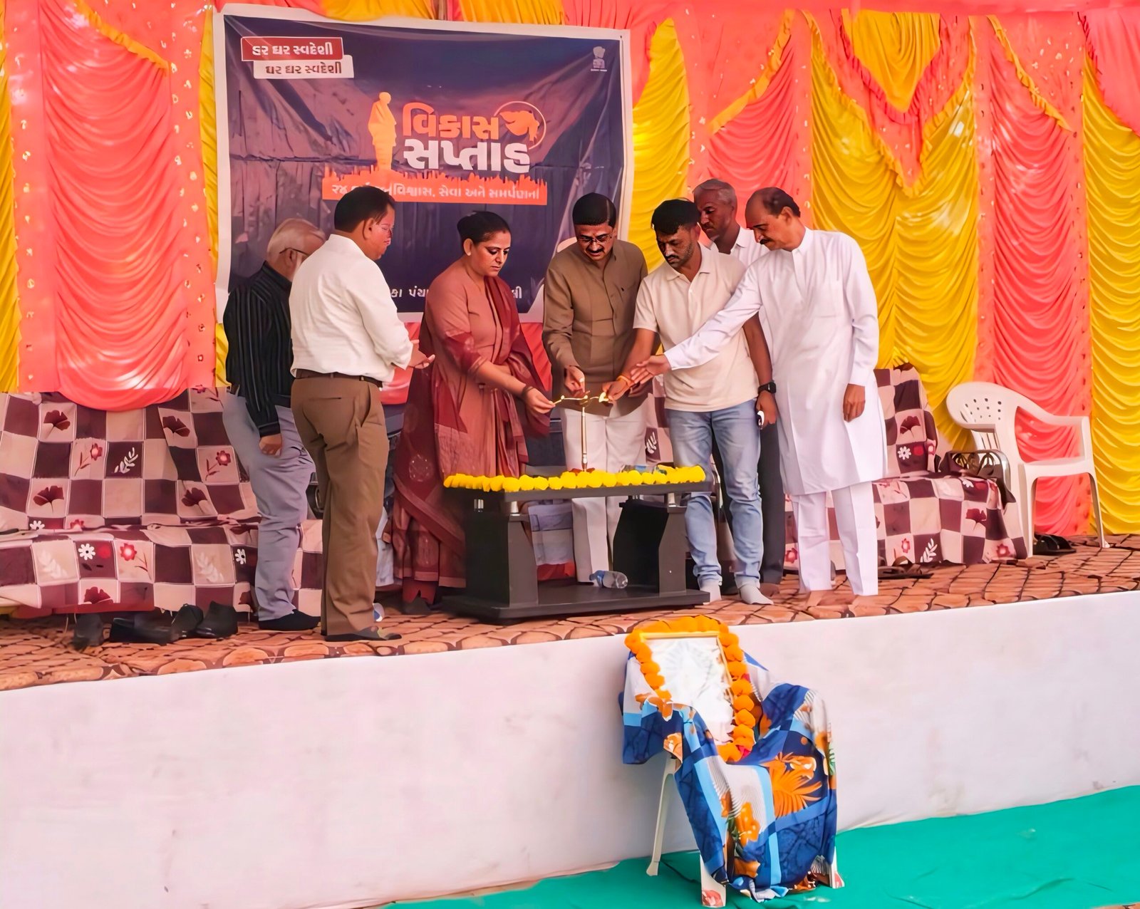 પ્રધાનમંત્રી નરેન્દ્રભાઈ મોદીના સુશાસનના ૨૪ વર્ષ પૂર્ણ થતા ગુજરાતભરમાં “વિકાસ સપ્તાહ” ઉજવણીનો માહોલ સર્જાયો છે. પ્રધાનમંત્રીશ્રીના અવિરત માર્ગદર્શન અને વિઝન હેઠળ ગુજરાતે છેલ્લા બે દાયકાથી વધુ સમયગાળામાં સર્વાંગી વિકાસની હરણફાળ ભરી છે. રાજ્ય સરકાર મુખ્યમંત્રી ભૂપેન્દ્ર પટેલના નેતૃત્વ હેઠળ આ વિકાસયાત્રાને જનજન સુધી પહોંચાડવા ૭ થી ૧૫ ઓક્ટોબર, ૨૦૨૫ દરમિયાન “વિકાસ સપ્તાહ” ઉજવણી કરવામાં આવી રહી છે.. વિકાસ સપ્તાહ – ૨૦૨૫ અંતર્ગત છોટાઉદેપુર જિલ્લાના બોડેલી તાલુકાના નાના કાંટવા ગામે ધારાસભ્ય રાજેન્દ્રસિંહ રાઠવાના અધ્યક્ષસ્થાને કાર્યક્રમ યોજાયો હતો. જેમાં મહાનુભાવો દ્વારા વિકાસ રથનું પરંપરાગત રીતે સ્વાગત કરવામાં આવ્યું હતું.. આ પ્રસંગે મહાનુભાવોના હસ્તે ગામના લાભાર્થીઓને વિવિધ યોજનાકીય લાભોનું વિતરણ કરવામા આવ્યું હતું. વિકાસ સપ્તાહ દરમિયાન વિકાસ રથના માધ્યમથી ઉપસ્થિત સૌએ સરકારી યોજનાઓ અને વિકાસની ઝાંખી નિહાળી હતી. કાર્યક્રમના અંતે આત્મનિર્ભર ભારતના નિર્માણ માટેની પ્રતિજ્ઞા લીધી હતી. આ પ્રસંગે બોડેલી તાલુકા પંચાયત પ્રમુખ ડૉ.શીતલકુંવરબા મહારાઉલ, સમાજ કલ્યાણ અધિકારી એચ જે ચાવડા, તાલુકા વિકાસ અધિકારી, મામલતદાર, સરપંચ, અન્ય પદાધિકારીઓ, અધિકારીઓ સહીત મોટી સંખ્યામાં ગ્રામજનો ઉપસ્થિત રહ્યા હતા.