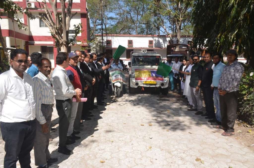 आज 10 मार्च को जिला न्यायालय रतलाम प्रांगण में प्रधान न्यायाधीश, कुटुम्ब न्यायालय श्री रामजी गुप्ता, प्रभारी प्रधान जिला एवं सत्र न्यायाधीश एवं विशेष न्यायाधीश श्री रवीन्द्र प्रताप सिंह चुण्डावत के कुशल नेतृत्व में जिला विधिक सेवा प्राधिकरण, रतलाम द्वारा लोक अदालत के व्यापक प्रचार-प्रसार हेतु वाहनों को हरी झंडी दिखाकर रवाना किया गया। उक्त वाहनों से संपूर्ण रतलाम शहर एवं जिले के ग्रामीण क्षेत्रों में नियुक्त पीएलव्ही लोक अदालत का प्रचार-प्रसार करेंगे।