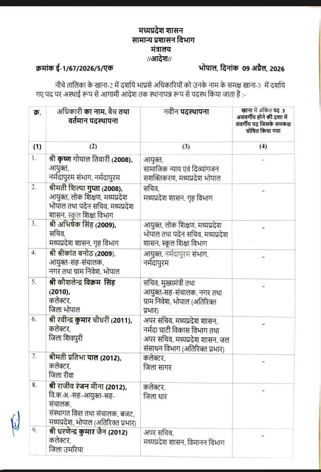 #MPNews #IAS #Transfer #Collector #Bhopal #Damoh #Sagar #BreakingNews