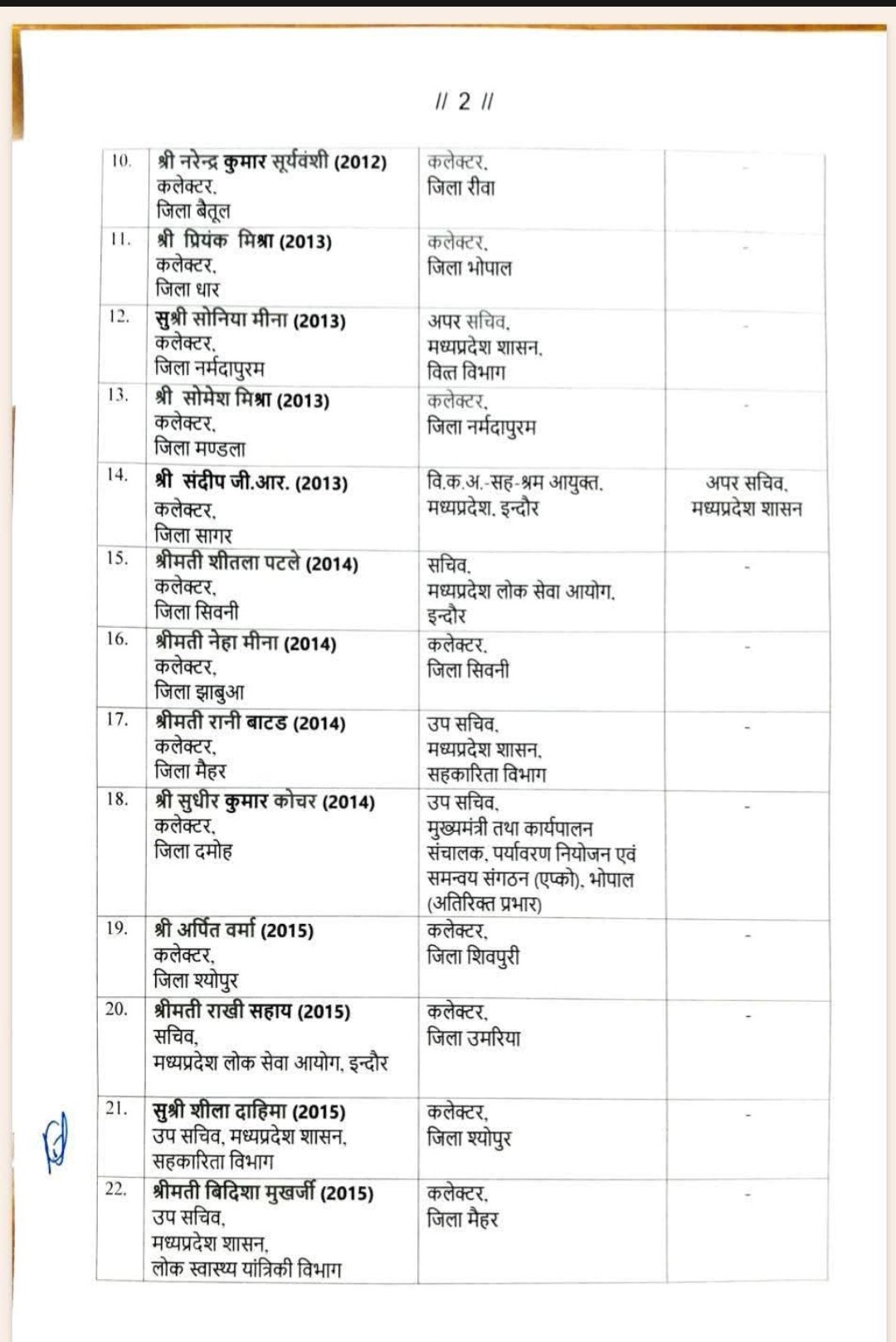 ➡️ रीवा, धार, शिवपुरी, मुरैना, झाबुआ, मंडला, श्योपुर, सीधी, उमरिया सहित कई जिलों में कलेक्टर बदले गए।