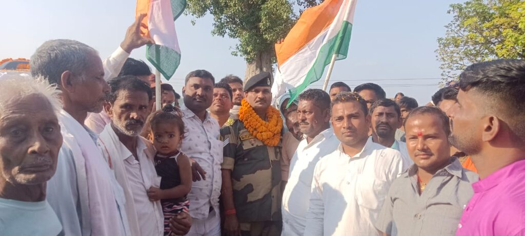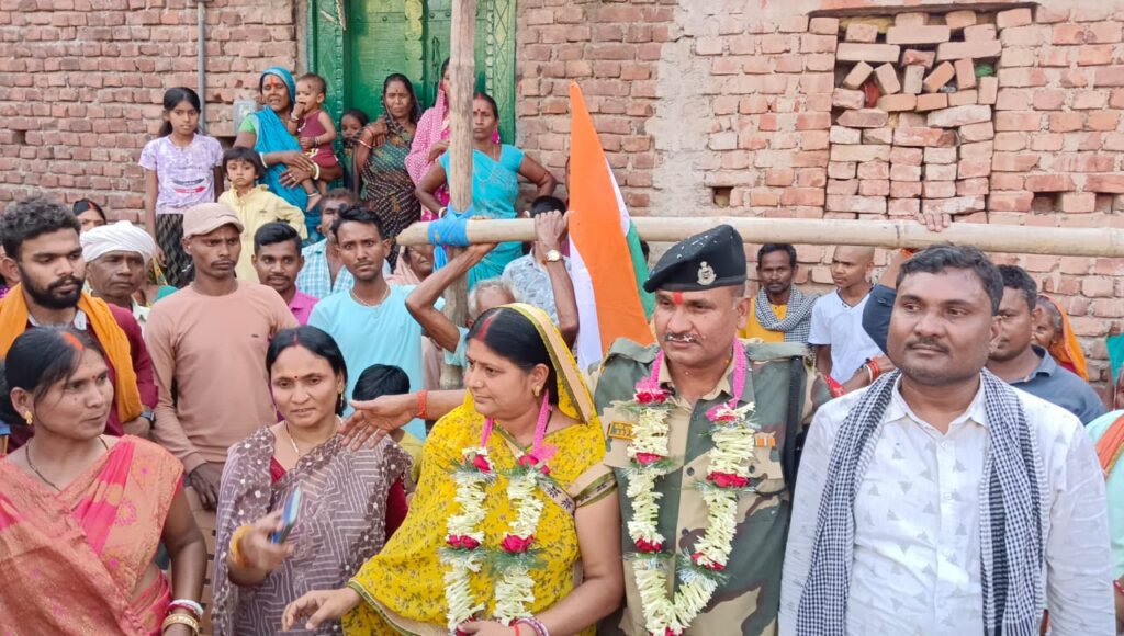 गोविंदपुर : थाना क्षेत्र के बनिया विगहा गांव में शुक्रवार को एक ऐतिहासिक क्षण देखने को मिला, जब गांव के वीर सपूत शशि भूषण सिंह बीएसएफ से सेवानिवृत्त होकर अपने पैतृक गांव लौटे. उनके स्वागत में ग्रामीणों ने तिरंगे के साथ ढोल-बाजे, फूलों की मालाएं और केक के साथ जोरदार अभिनंदन किया. शशि भूषण सिंह जैसे ही गांव पहुंचे उनके छोटे भाई पंकज कुमार के नेतृत्व में पहले से तैयार खड़े सैकड़ों ग्रामीणों ने उन्हें फूलों की माला पहनाई और ढोल-नगाड़ों एवं राष्ट्रीय ध्वज तिरंगे के साथ पूरे गांव में जुलूस के रूप में घुमाया. यह दृश्य किसी त्योहार से कम नहीं था. गांव भ्रमण के बाद उनके घर के पास स्वागत समारोह आयोजित किया गया, जहां केक काटा गया. इस मौके पर उनके छोटे भाई पंकज कुमार, उनकी माता और पत्नी मौजूद थी. सेवा निवृत्त शशि भूषण सिंह ने बताया कि उनकी भर्ती बीएसएफ में 24 मार्च 1994 को हुई थी. इसके बाद वे 31 वर्ष, 2 माह और 8 दिन तक देश की सेवा में समर्पित रहे. 30 अप्रैल 2025 को वे पंजाब की सीमा पर तैनाती के दौरान सेवानिवृत्त हुए. गांववासियों ने उन्हें सिर्फ एक रिटायर्ड जवान नहीं, बल्कि गौरव, प्रेरणा और सम्मान का प्रतीक बताया. युवाओं में उन्हें देखकर देशसेवा का उत्साह देखा गया. यह आयोजन यह साबित करता है कि जब देश का कोई बेटा सरहद से लौटता है, तो उसका स्वागत सिर्फ घर नहीं, पूरा गांव करता है. गौरतलब हो शशि भूषण के पिता बाबूलाल सिंह भी फौज में थे और सेवानिवृत्ति के कुछ दिन बाद उनका स्वर्गवास हो गया.