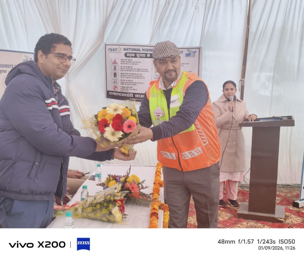 एनएचएआई प्रोजेक्ट मैनेजर अतुल शर्मा ने अवगत कराया है कि 37वें राष्ट्रीय सड़क सुरक्षा माह के अंतर्गत जनपद हरिद्वार में चल रहे सड़क सुरक्षा जागरूकता कार्यक्रमों के अंतर्गत आज दिनांक 9 जनवरी 2026 को सुबह 11:00 बजे ऋषिकुल ग्राउंड में राष्ट्रीय राजमार्ग प्राधिकरण रुड़की के द्वारा मुज़फ्फरनगर–हरिद्वार परियोजना (NH-334 & 34) पर अधिकृत एजेंसी NHIT Southern Projects Pvt. Ltd. द्वारा परिवहन विभाग के सहयोग से एक निशुल्क हेल्थ एवं आई चेक अप कैंप लगाया गया। जिसका शुभारंभ एक 3 वर्षीय बालिका हरिश्री खंडेलवाल के हाथो से कराया गया। श्री विशाल गोयल, परियोजना निदेशक, भारतीय राष्ट्रीय राजमार्ग प्राधिकरण, पी आई यू – रुड़की एवं एन एच आई टी प्रोजेक्ट मैनेजर श्री संतोष साईं जी द्वारा कार्यक्रम में परिवहन विभाग से उपस्थित सहायक सौभाग्य परिवार अधिकारी से निखिल शर्मा, के सी पलारिया, श्रीमती नेहा झा व श्रीमती वरुणा सैनी का सम्मान किया गया एवं उपस्थित सभी वाहन चालकों का स्वागत करते हुए यातायात नियमों से संबंधित जानकारी दी एवं सभी को अपनी स्वास्थ्य को लेकर बरती जाने वाली सावधानियां के बारे में अवगत कराया। आज के कार्यक्रम में हेल्थ चेकअप के लिए आई डॉक्टर्स की टीम जया मैक्सवेल हॉस्पिटल बहादराबाद एवं आई चेक अप के लिए नेत्रधाम हॉस्पिटल की टीम द्वारा सभी ऑटो व ई-रिक्शा चालको एवं बस चालको कि जाँच की गयी। आज के कैम्प में लगभग 11:00 बजे से 2:00 तक लगभग 180 लोगो की आँखों एवं स्वास्थ्य संबंधी जाँच की गयी।