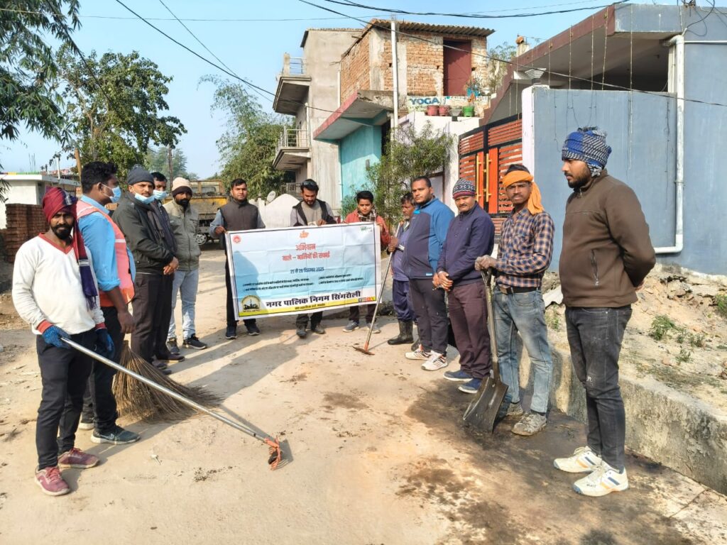 सिंगरौली: नगर निगम आयुक्त श्रीमती सविता प्रधान के निर्देशन में माह दिसंबर के कैलेंडर अनुसार नगर निगम सिंगरौली द्वारा शहरभर में व्यापक स्वच्छता अभियान चलाया जा रहा है। इस अभियान का उद्देश्य शहर को साफ-सुथरा बनाना और नागरिकों को स्वच्छता के प्रति जागरूक करना है।अभियान के दौरान विभिन्न जोनों में नालों व नालियों की साफ-सफाई कराई गई। इसके साथ ही लोगों को सूखा और गीला कचरा अलग-अलग रखने के लिए प्रेरित किया गया। जिसके तहत आज अभियान चलाकर नाला नालियों की सफाई कर कीटनाशक दवाओ का छिड़काव कराया गया। अभियान के दौरान मोरवा जोन में गायत्री मंदिर के पास बहने वाले नाले, जयंत जोन में गुरुद्वारा के पास पास बहने वाले नाले, ग्रामीण जोन नंदगांव सेक्टर नंबर 3 के पास बहने वाले नाले, नवजीवन बिहार जोन सूर्या नाले तथा वैढन जोन में प्रधानमंत्री आवास के पास बहने वाले नाले की साफ सफाई किया गया। अभियान के नेतृत्व अलग अलग स्थलो में कार्यपालन यंत्री संतोष पाण्डेय, स्वास्थ्य अधिकारी बी.जी चतुर्वेदी, सहायक यंत्री अभय राज सिंह, उपयंत्री विपिन तिवारी द्वारा किया गया।