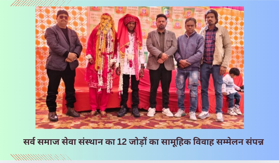 कोटा। सर्व समाज सेवा संस्थान की ओर से यूआईटी भवन, अजय आहूजा नगर कोटा में 12 जोड़ों का सामूहिक विवाह सम्मेलन भव्य रूप से आयोजित किया गया। सम्मेलन में मध्यप्रदेश और हाड़ौती अंचल के विभिन्न क्षेत्रों से आए जोड़ों ने विवाह किया, वहीं हजारों की संख्या में मेहमानों ने आयोजन में शिरकत की।