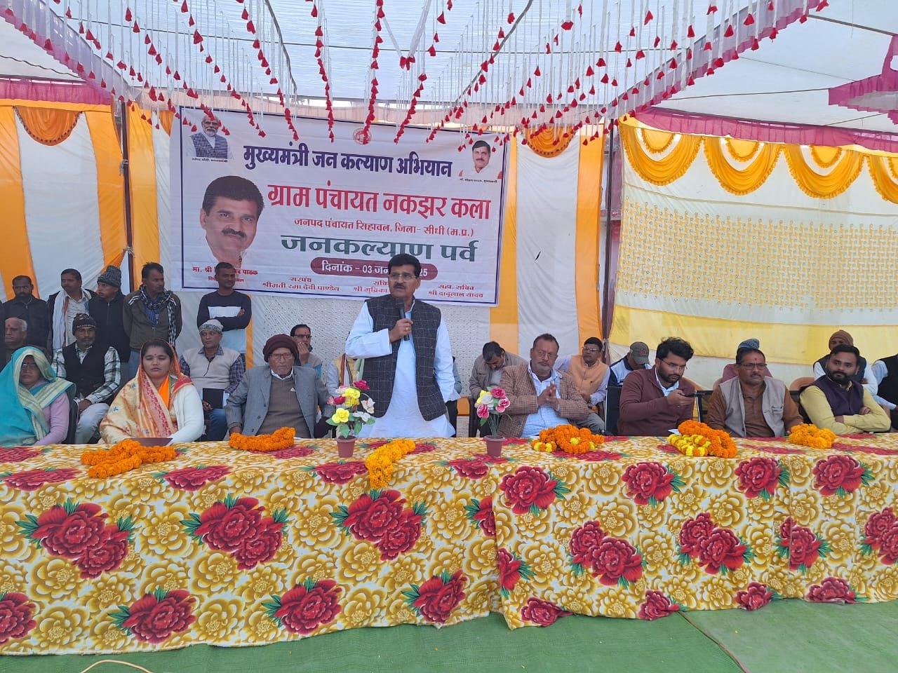 प्रदेश एवं केंद्र सरकार की जनकल्याण कारी योजनाओं से वंचित व्यक्तियों को लाभान्वित करने के उद्देश्य से मुख्यमंत्री जनकल्याण अभियान प्रारंभ किया गया है ।अभियान का मकसद केंद्र एवं राज्य सरकार की सभी जनकल्याणकारी योजनाओं के पात्र हितग्राहियों को शत प्रतिशत लाभान्वित कराना। यह तभी संभव होगा जब योजनाओं की जानकारी लोगों को हो तथा प्रभावी क्रियान्वयन हो। उक्त आशय के विचार माननीय श्री विश्वामित्र पाठक विधायक सिहावल ने ग्राम पंचायत बरबधा, नकझर कला एवं देवरी में आयोजित मुख्यमंत्री जनकल्याण अभियान कार्यक्रम में मुख्य अतिथि के तौर पर व्यक्त किए। मुख्यमंत्री जनकल्याण अभियान के तहत विधानसभा क्षेत्र सिहावल अंतर्गत जनपद पंचायत सिहावल के ग्राम पंचायत बरबधा, नकझर कला एवं देवरी में मुख्यमंत्री जनकल्याण कार्यक्रमआयोजित हुआ।