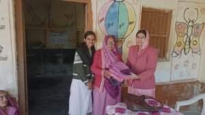 खारड़ा में प्रथम आंगनवाड़ी केंद्र पर कार्यकर्ता व सहायका को ड्रेसे वितरण की गई।