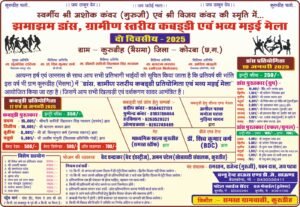 अत्यन्त हर्ष एवं उल्लास के साथ आप सभी प्रतिभागी भाईयों को सूचित किया जाता है कि प्रतिवर्ष की भांति इस वर्ष भी ग्राम कुरुडीह (भैसमा) में “डांस, ग्रामीण स्तरीय कबड्डी प्रतियोगिता एवं भव्य मड़ई मेला” आयोजित किया जा रहा है। जिसमें आप सभी खिलाड़ी एवं दर्शकगण सादर आमंत्रित हैं।
