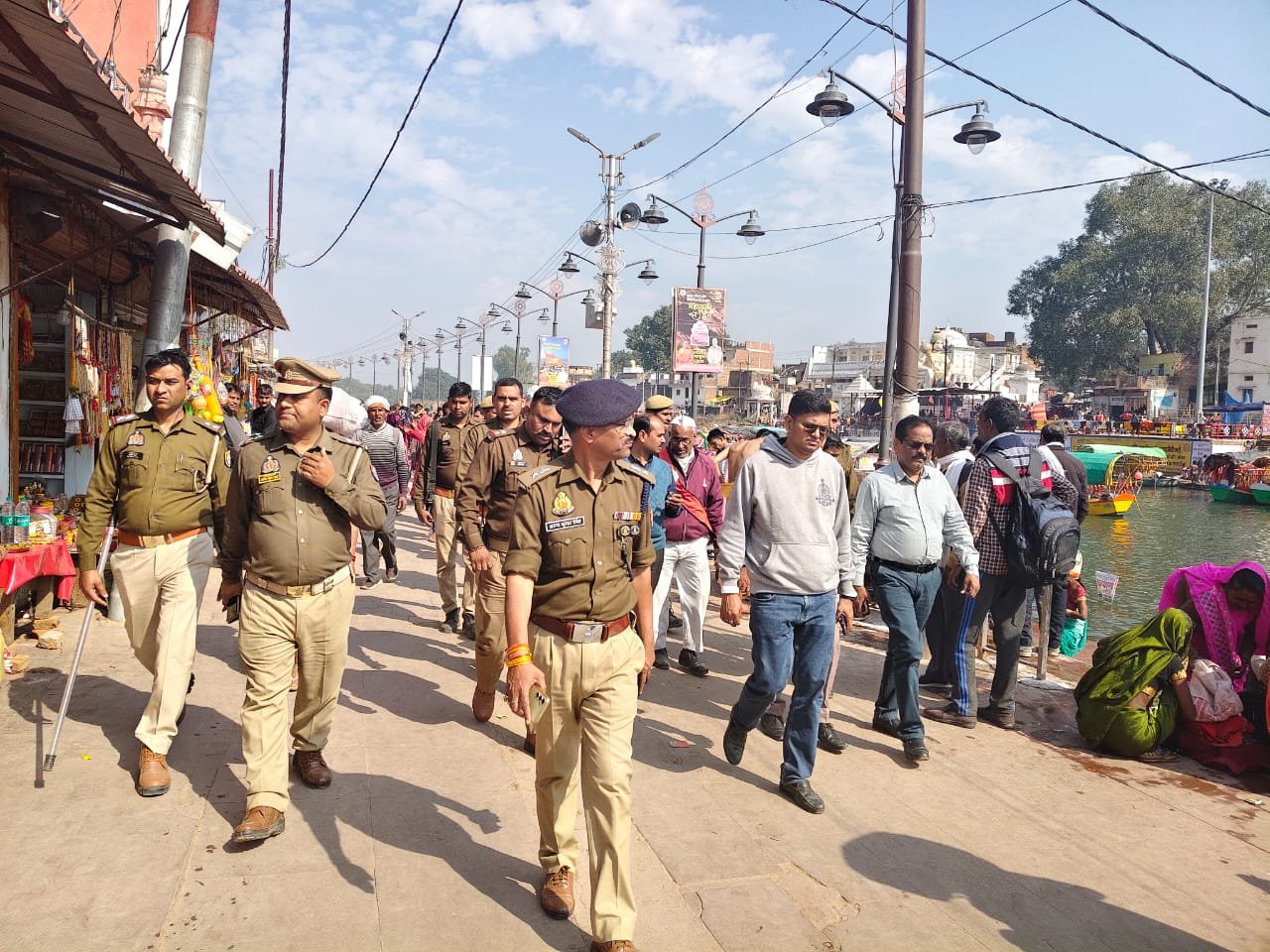 जनपद चित्रकूट महाकुंभ 2025 व मौनी अमावस्या मेला को सकुशल संपन्न कराए जाने हेतु अपर जिलाधिकारी शिवशरणप्पा जी0एन0 एवं पुलिस अधीक्षक चित्रकूट अरुण कुमार द्वारा रामघाट पर भ्रमण कर सुरक्षा व्यवस्था का जायजा लिया गया साथ ही ड्यूटी में लगे समस्त अधिकारी/कर्मचारीगण की चेकिंग की गयी तथा श्रद्धालुओं के साथ विन्रमतापूर्वक व्यवहार करने हेतु बताया गया।