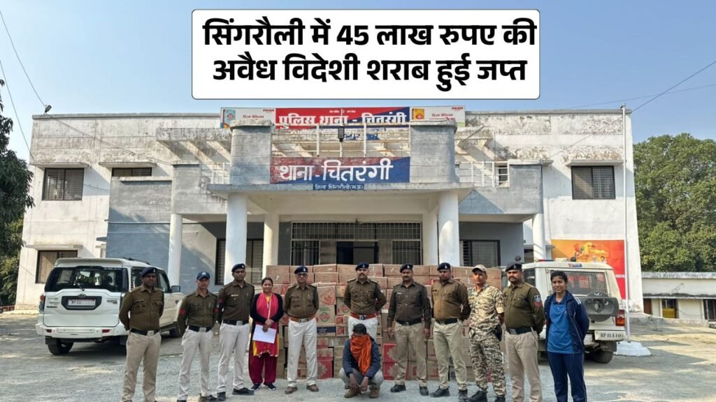 सिंगरौली समाचार : चितरंगी पुलिस ने अवैध शराब तस्करी के खिलाफ एक बड़ी कार्रवाई की है। चितरंगी पुलिस ने नेशनल हाईवे 39 पर एक टीपर वाहन से करीब 45 लाख रुपये की अवैध विदेशी शराब बरामद की। इस कार्रवाई में पुलिस ने 453 पेटी शराब और एक वाहन जब्त किया। इस अवैध शराब तस्करी के मामले में वाहन चालक अंकित उर्फ सोनू मल्लाह को गिरफ्तार किया गया है।