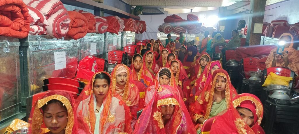 किशनगंज: पोठिया प्रखंड अंतर्गत छत्तरगाछ कुशियारबाड़ी स्थित मौलाना नजीर साहब के निवास पर गुरुवार को MK Grow Foundation के उपलक्ष में गरीब निर्धन कन्याओं का सामूहिक विवाह आयोजन संपन्न हुआ ।यह कार्यक्रम एमके ग्रो फाउंडेशन के डायरेक्टर कैसर आलम एवं रौशन आरा, संचालक शानू गाज़ी, द्वारा आयोजित किया गया इस आयोजन में सभी धर्म-जाति के 38 कन्यायों का सामूहिक विवाह एवं विदाई समारोह आयोजन किया गया.वही फाउंडेशन के डायरेक्टर कैसर आलम ने संचालन कर जानकारी देते हुए बताया हमारे फाउंडेशन का उद्देश्य भ्रूण हत्या,बाल विवाह, पर रोक एवं आर्थिक स्थिति से जूझ रही गरीब लड़कियों के हित मे कार्य करना और उन्हें आत्मनिर्भर करना आदि जैसा लक्ष्य है. जिसको सबको मिलकर पूरा करना है. वही भोटाथाना पंचायत के मुखिया मरगूब आलम ने इस कार्य को सराहनीय कार्य बताते हुए कहा के इस क्षेत्र मे अगर ऐसा हमारे युवा कर रहे है तो बहुत ख़ुशी की बात है गरीब समाज के लिए बड़ा सहयोग है इन्होने कहा के यह उनकी प्रेरणा से छत्तरगाछ में पहला कार्यक्रम है जो बड़ी ही भव्यता और दिव्यता के साथ पूर्ण हुआ है ।कार्यक्रम के संचालक शानू गाज़ी ने बताया की कार्यक्रम छत्तरगाछ पुलिस कैंप प्रभारी राजू कुमार, छत्तरगाछ मुखिया अबुल कासिम, भोटाथाना मुखिया मरगूब आलम, छत्तरगाछ सरपंच अज़हरुद्दीन, आदि की उपस्थिति में संपन्न हुआ। सभी 38 कन्यायों को ट्रंक, तोसक, तकिया, रजाई, वर वधू का वस्त्र, कुर्सी, बर्तन, साजो-सामान इत्यादि दिया गया घरेलू सामान देकर आशीर्वाद प्रदान किया गया। यह कार्यक्रम आगामी वर्षों में एमके ग्रो फाउंडेशन के तत्वावधान में चलता रहेगा।ऐसे संकल्प के साथ सभी ने इसमें उपस्थित होकर कन्यायों को आशीर्वाद प्रदान किया| इस कार्यक्रम में विशेष रुप से छत्तरगाछ पुलिस कैंप प्रभारी राजू कुमार, छत्तरगाछ मुखिया अबुल कासिम, भोटाथाना मुखिया मरगूब आलम, छत्तरगाछ सरपंच अज़हरुद्दीन, डॉक्टर इनामुल हक़, फाउंडेशन के डायरेक्टर कैसर आलम व रौशन आरा, संचालक शानू गाज़ी,आदि सहित अन्य ग्रामीण उपस्थित रहे।