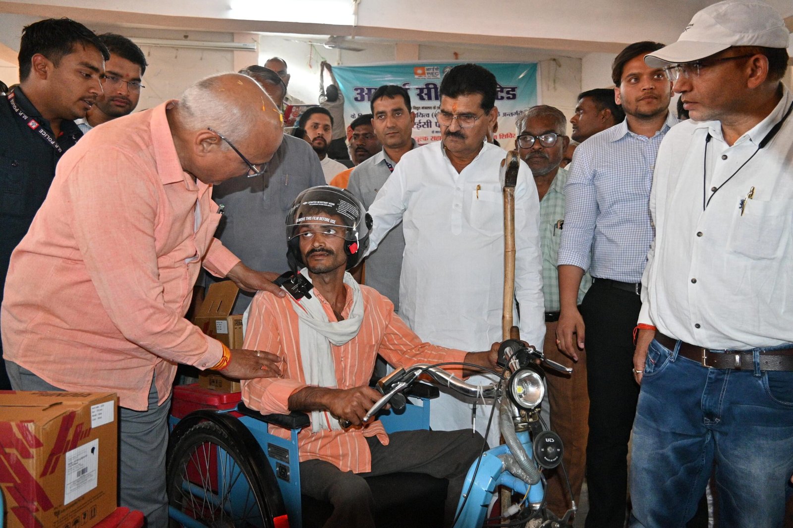 जनपद सभागार सिहावल में आर ई सी लिमिटेड के तत्वावधान एव एलिम्को के सहयोग से दिव्यागजनों को निःशुल्क सहायक उपकरण वितरण शिविर आयोजित किया गया।