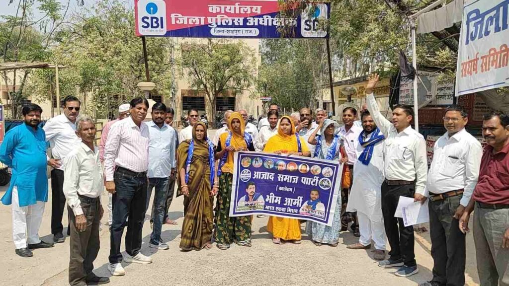 आज दिनांक 3-4-25 को शाहपुरा जिला बचाओ संघर्ष समिति के द्वारा उपखंड कार्यालय शाहपुरा के बाहर क्रमिक अनशन धरने पर आजाद समाज पार्टी शाहपुरा के सदस्य शांतिपूर्ण तरीके से नारेबाजी करते हुए धरना स्थल पर पहुंचकर शाहपुरा जिले को समाप्त करने के विरोध में प्रदर्शन किया और शाहपुरा को वापस जिले का दर्जा देने की मांग का ज्ञापन राज्यपाल के नाम उपखण्ड अधिकारी को दिया । आजाद समाज पार्टी शाहपुरा के अध्यक्ष भेरूलाल रेगर , महिला अध्यक्ष जहाजपुर फोरी देवी रेगर ,सदस्य सुरेश चंद्र घूसर , सांवरलाल रेगर ,आशा देवी रेगर कर्मा देवी रेगर शीला देवी भील सहित कई सदस्य क्रमिक अनशन धरने बैठे जिनका संघर्ष समिति की ओर से माल्यार्पण कर स्वागत किया गया। जिला बचाओ संघर्ष समिति के अध्यक्ष दुर्गा लाल राजोरा महासचिव कमलेश मुंडेतिया सहित आजाद समाज पार्टी के जिला अध्यक्ष भैरूलाल रेगर शीला देवी भील ,किसान केसरी संघ के सूर्य प्रकाश ओझा एवं संघर्ष समिति के सदस्यो ने संबोधित किया और सरकार से शाहपुरा को वापस जिला बनाने की मांग की । इस मौके पर संघर्ष समिति सदस्य उदय लाल बेरवा दुर्गा लाल जोशी शुगन लाल बोहरा सत्यनारायण पाठक धनराज जीनगर हाजी उस्मान मोहम्मद छिपा मदन सर्वा छोटू रंगरेज नजीर मोहम्मद शेख अरुण राव अभिभाषक संस्था उपाध्यक्ष गजेंद्र प्रताप सिंह राणावत वरिष्ठ अधिवक्ता कल्याणमल धाकड़ दिनेश चंद्र व्यास मौजूद रहे। शाहपुरा जिला बचाओ संघर्ष समिति महासचिव व संस्था सहसचिव कमलेश मुंडेतिया ने बताया कि शाहपुरा जिला बचाओ संघर्ष समिति को सामाजिक संगठनों और आमजन का लगातार समर्थन मिल रहा है आमजन की भावनाओं को देखते हुए आंदोलन निरंतर अनवरत जारी रहेगा तथा 4अप्रेल को अंबेडकर विचार मंच खामोर के सदस्य क्रमिक अनशन धरने पर बैठेंगे