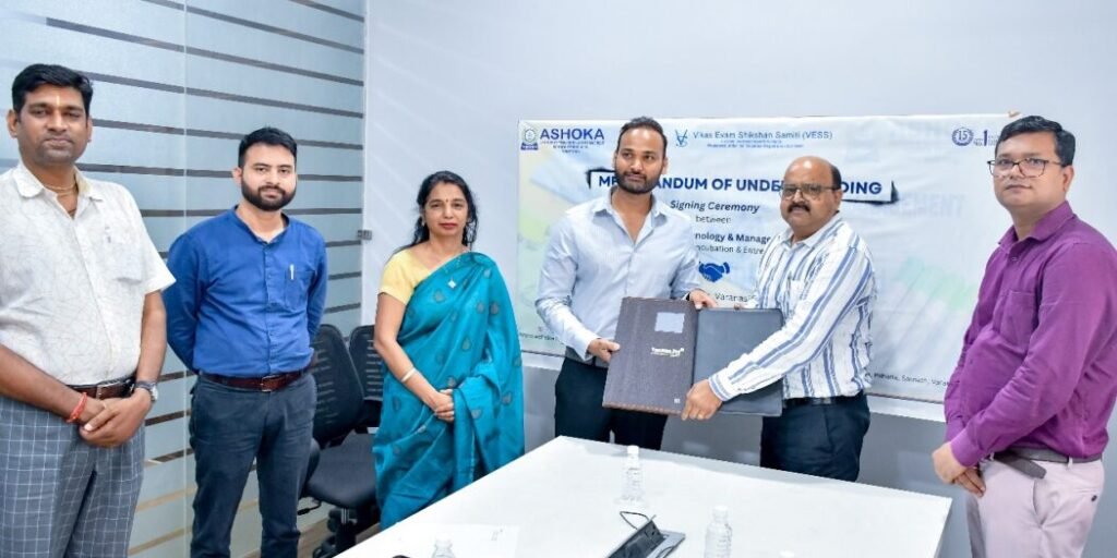 अशोक इंस्टीट्यूट ऑॅफ टेक्नोलॉजी एण्ड मैनेजमेंट और पर्यावरण संरक्षण के लिए प्रदेश में काम कर रही संस्थान (वेस इण्डिया) विकास एवं शिक्षण समिति के बीच आज एक महत्वपूर्ण समझौता हुआ । यह समझौता सामाजिक उद्यमशीलता ,नवाचार और वंचित समुदायों के समग्र विकास को लक्ष्य बनाकर किया गया । यह समझौता छात्रों एवं समुदाय के बीच एक सेतु का काम करेगा इस साझेदारी का मुख्य उद्देश्य युवाओं एवं समाज के वंचित वर्गों को सरकारी योजनाओं से जोडना ,प्रशिक्षण और उनकी क्षमता निर्माण के माध्यम से आत्मनिर्भर बनाना तथा सामाजिक बदलाव की दिषा में ठोस कदम उठाने के लिए होगा दोनो ही संस्थान फील्ड और स्टार्टअप दोनों को सम्मिलित करके मजबूत विकास करने और प्रदेष में हरित क्रांति के लिए सम्मिलित प्रयास करेगा जिससे पर्यावरण के साथ साथ वंचित वर्गो में काम के अवसरों के साथ आर्थिक संपन्नता भी बढेगी। इस समझौते के लिए अषोका इंस्टीट्यूट के चेयरमैन इंजीनियर अंकित मौर्य और वेस इण्डिया की ओर से संस्था के निदेशक मुख्य र्प्यावरणविद डा0 राजेष श्रीवास्तव ने हस्ताक्षर किए । समझौते के साथ ही संस्थान के चेयरमैन ई0 अंकित मौर्य ने कहा यह साझेदारी शिक्षा , कौशल ,और समाज सेवा को एक साथ जोडने वाला अभिनव कदम है । हम मिलकर ऐसे प्रयास करेंगे जो जमीनी स्तर पर बदलाव ला सकें । वेस इण्डिया के निदेशक समाजसेवी डा0 राजेश श्रीवास्तव ने इस मौके पर कहा कि यह एमओयू समाज के लिए मील का पत्थर साबित होगा । अषोका इंक्युबेशन सेंटर लगातार छात्रों में बदलाव लाने के लिए हरसंभव प्रयासरत है जो युवाओं को सषक्त बनाकर आर्थिक उन्नति के साथ सामाजिक बदलाव की दिशा में नई संभावनाओं के द्वार खोलेगा । डायरेक्टर अशोका डा0 सारिका श्रीवास्तव ने कहाकि यह यूनिक पहल सशक्त समाज की ओर मजबूत कदम साबित होगा । इस अवसर पर अशोका इंस्टीट्यूट के वाइस चेयरमैन डा0 अमित मौर्य ने बताया पूर्वाचल के युवाओं और समाज के वंचित वर्गों के लिए आने वाले समय में युवाओं के लिए रोजगार के नए अवसर खुलेंगे और समाज में संपन्नता बढेगी । अशोका स्कूल ऑफ बिजनेस के मैनेजिंग डायरेक्टर अनुभव मौर्य ने कहा इस समझौते से पूर्वांचल के युवाओं को इंटर्नशिप के लिए सोशल इंटर प्रेन्योर बनने के नए रास्ते खुलेंगे । इस कार्यक्रम में अशोका इंस्टीट्यूट इंक्युबेशन सेंटर और फैकल्टी सदस्य ई0 सज्जाद अली , गौरव कुशवाहा ,संदीप कुमार और वेस इण्डिया के सदस्य आनंद अंबरीश शामिल रहे ।