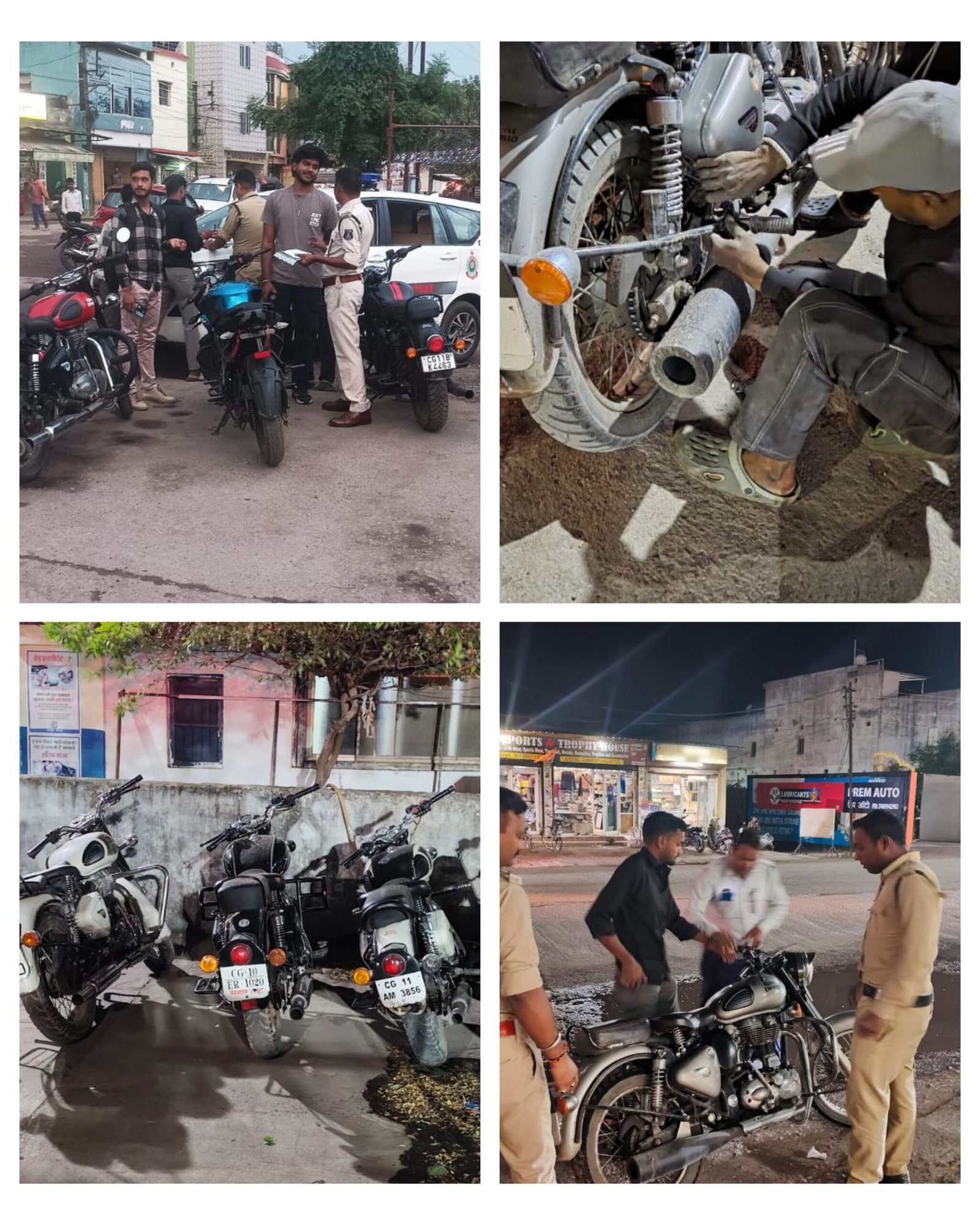मोडिफाई साइलेंसर लगाकर वाहन चलायें जाने पायें जाने पर 11 वाहन चालकों के विरूद्ध MV ACT के तहत कार्यवाही करते हुए 5000- 5000/₹ का एवं प्रेशर हार्न लगातार मोटर सायकल चलाने वाले 04 वाहन चालक से 1000-1000/₹ का समन शुल्क चार्ज किया