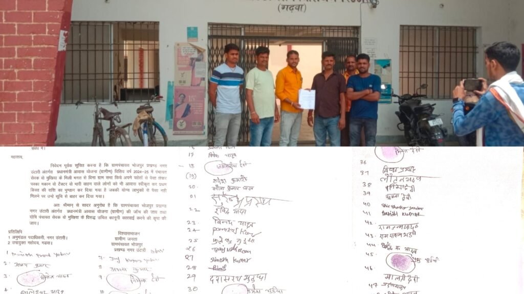 संवाददाता अखिलेश विश्वकर्मा गढ़वा श्री बंशीधर नगर नगर प्रखंड के भोजपुर गांव के ग्रामीणों ने बीडीओ को आवेदन देकर जांच कर करवाई करने का मांग प्रधानमंत्री आवास योजना (ग्रामीण) वितिय वर्ष 2024-25