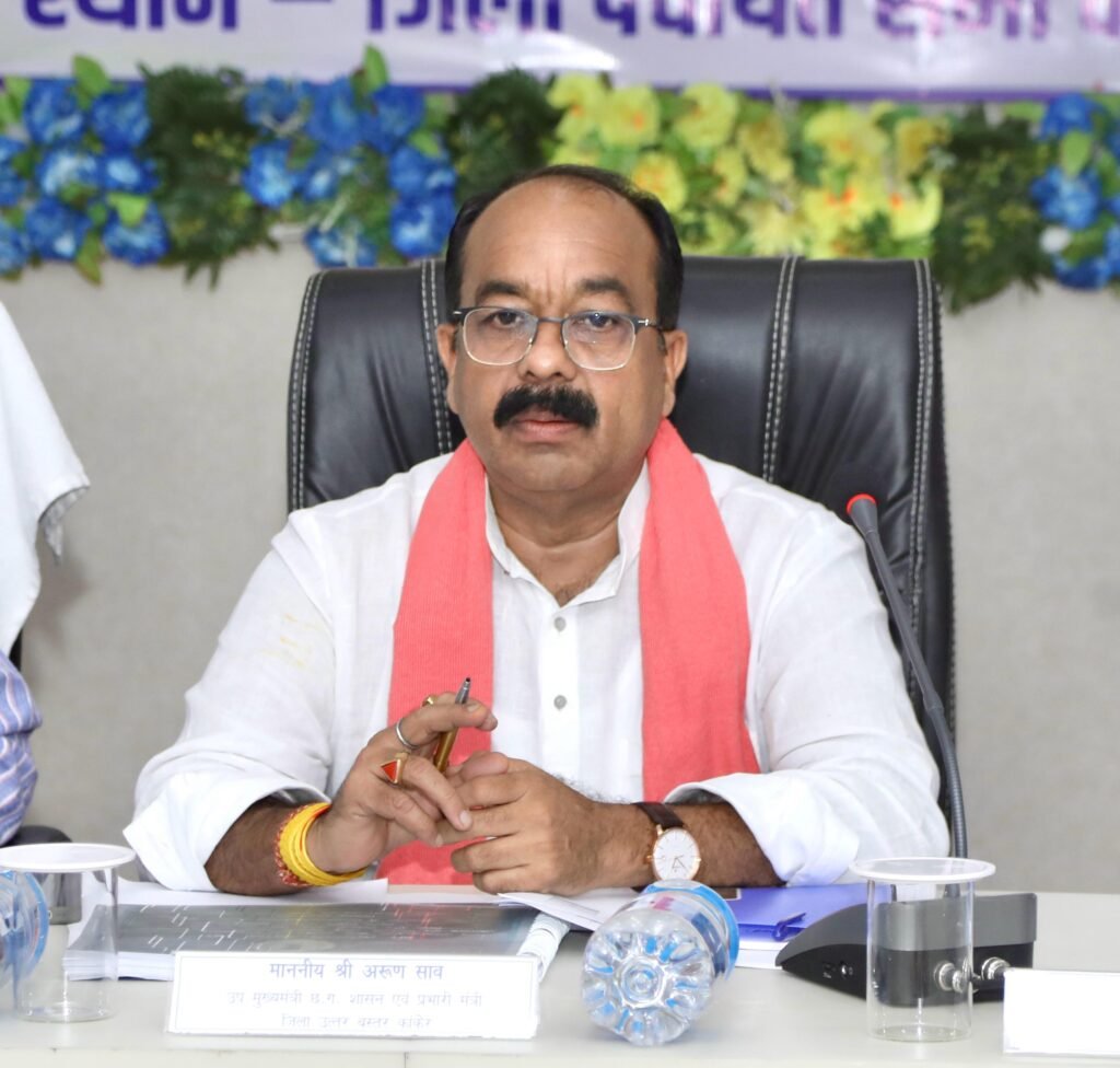 उप मुख्यमंत्री श्री अरुण साव ने कांकेर के सभी जिला स्तरीय विभागीय अधिकारियों को निर्देशित करते हुए कहा कि सुशासन तिहार के तहत प्राप्त आवेदनों का निराकरण औपचारिकतापूर्ण नहीं, बल्कि गंभीरता से करें। विभिन्न क्षेत्रों में कांकेर श्रेष्ठ जिला है, इसे और बेहतर बनाने की दिशा में सभी अधिकारियों को समन्वित प्रयास करना होगा। सभी अधिकारी अपनी योग्यता, बुद्धिमता और क्षमता का पूर्ण उपयोग करते हुए शासन की मंशानुसार योजनाओं का समुचित क्रियान्वयन करें। उन्होंने विशेष रूप से पेयजल, नगरीय विकास, शिक्षा, निर्माण कार्य, जल संरक्षण, आवास तथा स्वास्थ्य विभाग में संचालित योजनाओं के बेहतर क्रियान्वयन पर जोर दिया। साथ ही वर्षा ऋतु के पहले सभी निर्माण कार्यों को पूरी गुणवत्ता के साथ पूर्ण करने के निर्देश संबंधित अधिकारियों को दिए।उप मुख्यमंत्री तथा कांकेर जिले के प्रभारी मंत्री श्री साव ने प्रधानमंत्री आवास योजना (शहरी) की समीक्षा करते हुए नगर पंचायत भानुप्रतापपुर और पखांजूर में आवास निर्माण की धीमी गति पर असंतोष प्रकट करते हुए इसमें तेजी लाने के निर्देश मुख्य नगरपालिका अधिकारियों को दिए। उन्होंने अटल परिसरों के निर्माण की धीमी प्रगति पर भी नाराजगी जाहिर करते हुए इन्हें जल्द से जल्द पूर्ण करने को कहा।श्री साव ने अमृत सरोवर योजना पर विशेष जोर देते हुए कहा कि जल संरक्षण के लिए सिर्फ प्रशासन ही नहीं, जनप्रतिनिधियों को भी आगे आना होगा, ताकि भावी पीढ़ी सुरक्षित रह सके। उन्होंने बैठक में लोक निर्माण विभाग के कार्यों को गुणवत्तापूर्ण ढंग से शीघ्र पूर्ण करने तथा जल जीवन मिशन के कार्यों में तेजी लाने के निर्देश दिए। उन्होंने प्रधानमंत्री आवास योजना (ग्रामीण) का लाभ शत-प्रतिशत पात्र हितग्राहियों को दिलाने के लिए आवास प्लस 2.0 के तहत किए जा रहे सर्वे का व्यापक प्रचार-प्रसार करने को कहा।