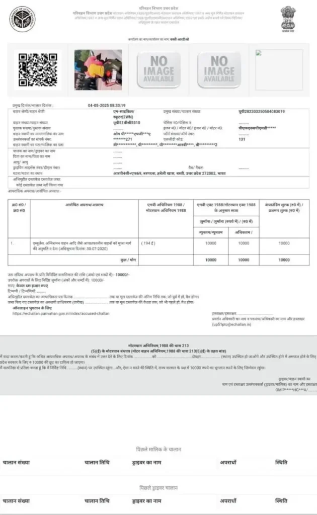 बस्ती में आरटीओ की मनमानी चरम पर: सड़क किनारे खड़ी बाइक का 10,000 रुपये का चालान!