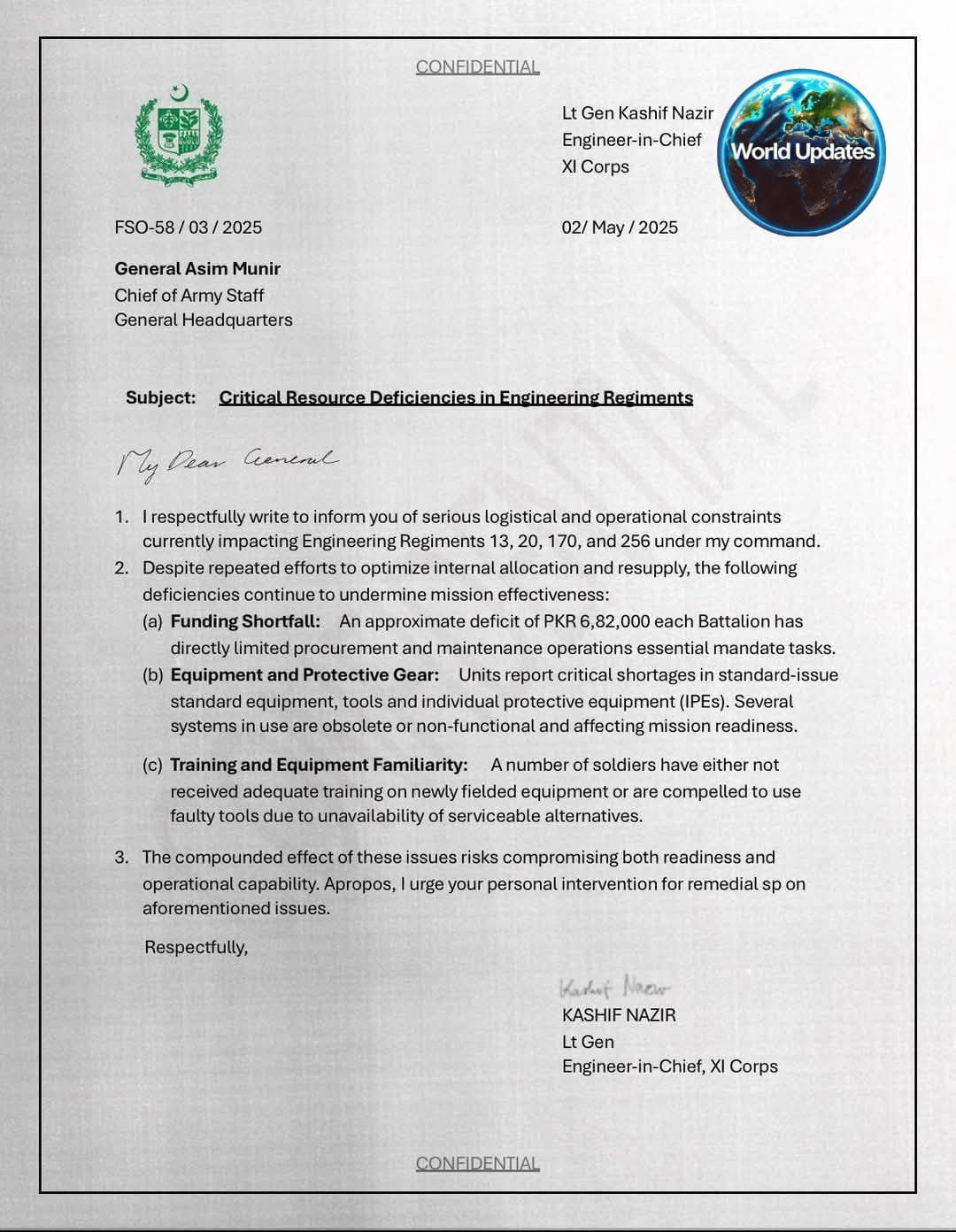 एक गुप्त दस्तावेज़ के डार्क वेब पर सामने आने से पाकिस्तान 🇵🇰 की सेना की खस्ता हालत का खुलासा हुआ है। इस दस्तावेज़ में जनरल असीम मुनीर को संबोधित पत्र में सेना के भीतर गहरी समस्याओं को उजागर किया गया है।