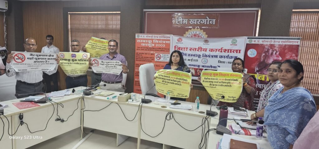 कलेक्टर श्रीमती भव्या मित्तल की अध्यक्षता में 05 मई को जिला स्तरीय समन्वय समिति की बैठक एवं कार्यशाला का आयोजन कलेक्टर परिसर के सभागार में किया गया। कार्यशाला के दौरान श्री आनन्द वर्मा (परियोजना समन्वयक), मध्य प्रदेश वोलंटरी हेल्थ एसोसिएशन ने कहा कि भारत में प्रतिवर्ष 13 से 14 लाख लोगों की मृत्यु तंबाकू सेवन से होने वाली बीमारियों के कारण होती है।