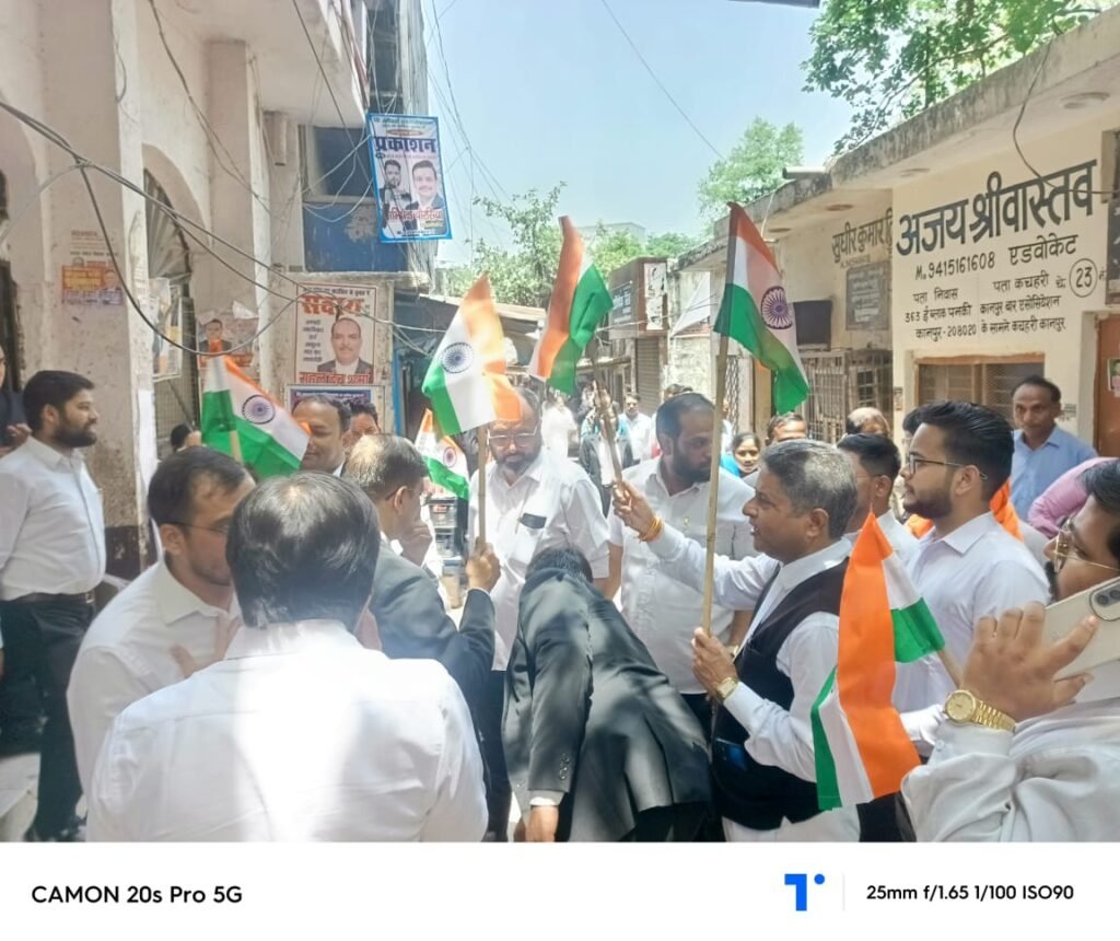 वक्ताओं ने नेशनल मीडिया प्रेस क्लब के प्रदेश अध्यक्ष एडवोकेट पंडित रविन्द्र शर्मा के आवाहन पर भारत स्वाभिमान शौर्य यात्रा निकाली, भारतीय सैनिकों द्वारा ऑपरेशन सिंदूर के तहत जहां एक तरफ पाकिस्तान के आतंकी ठिकानों को जिस शौर्य व पराक्रम से मिट्टी में मिलाया वही दूसरी ओर पाकिस्तान द्वारा ड्रोन व मिसाइलों को नष्ट करके उसे घुटनों में लाकर खड़ा कर दिया। भारतीय सेना के इस अदम्य शौर्य व पराक्रम से पाकिस्तान नतमस्तक होकर जान की भीख मांगता नजर आया । जिससे उत्साहित होकर आज कानपुर में “दि लॉयर्स एसोसिएशन के पूर्व अध्यक्ष एडवोकेट पंडित रविन्द्र शर्मा, प्रदेश अध्यक्ष नेशनल मीडिया प्रेस क्लब की अगुवाई में अधिवक्ताओं ने संगठित होकर हांथ में तिरंगा लेकर बड़े ही जोश व उत्साह के साथ “भारत स्वाभिमान शौर्य यात्रा” निकाली। शौर्य यात्रा जिलाधिकारी कार्यालय में पहुंचकर कानपुर जिलाधिकारी के माध्यम से भारत के प्रधानमंत्री को संबोधित प्रतिवेदन देते हुए पाकिस्तान को नष्ट करने हेतु भारतीय सेना को स्वतंत्र करने की मांग रखी । जिससे आतंक समाप्त किया जा सके ।