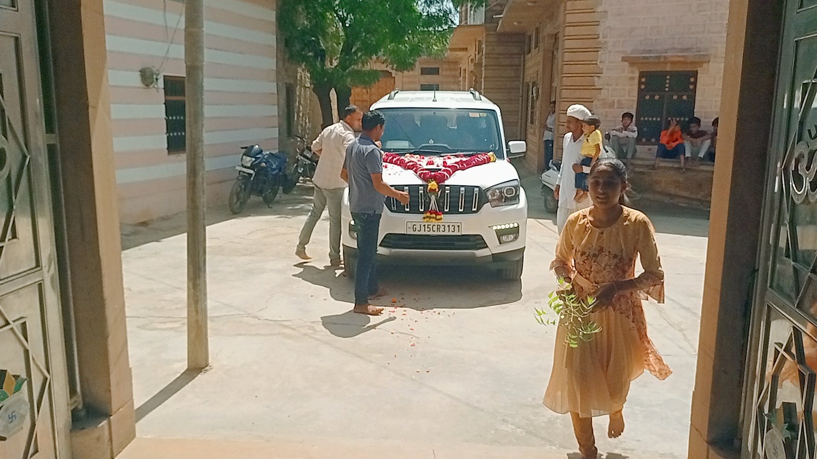 भाजपा नेता के घर आई नई स्कॉर्पियो गाड़ी, गाड़ी का बधावणा कर किया स्वागत।