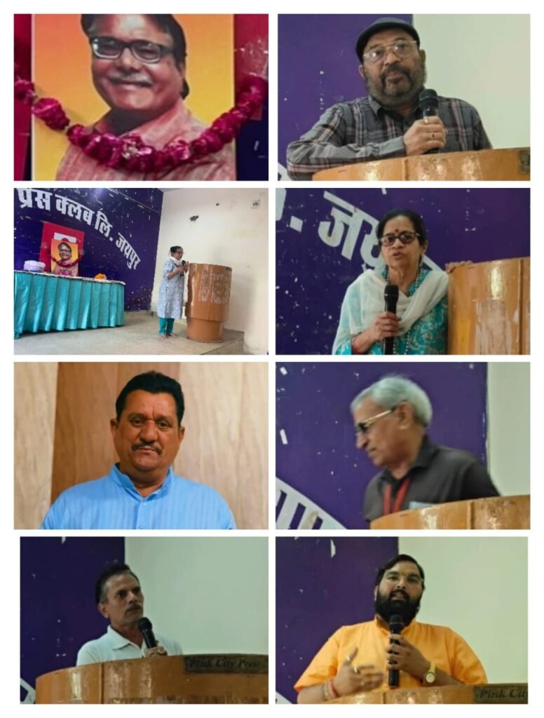 इस अवसर पर वरिष्ठ पत्रकार अशोक भटनागर , सत्य पारिक , आशा पटेल , देवेन्द्र शास्त्री , बाबूलाल भारती , शंकर नागर , विष्णु दत्त शर्मा , उपेन्द्र सिंह राठौड़ , अभय जोशी, आशा शर्मा , एस एन गौतम, मनवीर सिंह चुंडावत ,अमर सिंघल , अरुण झा, दिनेश अधिकारी, लोकेन्द्रसिंह ,रमाकांत गोस्वामी ने सभा में अपने उद्बोधन दिए। साथ ही बड़ी संख्या में उपस्थित पत्रकारों ने राष्ट्रीय अध्यक्ष को श्रद्धांजलि एवं श्रद्धा सुमन अर्पित कि♠