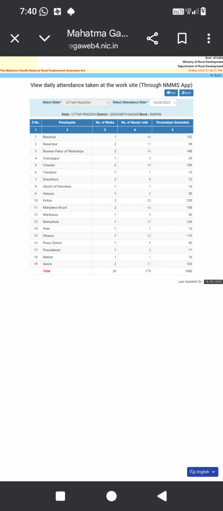 सिद्धार्थनगर जनपद के विकास खण्ड बढ़नी में इस समय मनरेगा योजना मिल बांट कर खाने का माध्यम बना हुआ है। उदाहरण के तौर पर क्षेत्र के बसंतपुर, चम्पापुर,सेवरा, कोटिया के साथ 19 ग्राम पंचायत में रविवार को कुल 26 परियोजना पर कार्य चल रहा है जिसके लिए 175 मस्टररोल जारी कर मजदूरों की सोमवार को शाम 8 बजे तक 26परियोजना पर 175 मस्टर रोल की आनलाइन हाजिरी लगाई गई है। लेकिन कुछ ग्राम पंचायतों में सिर्फ फोटो के लिए कुछ मजदूर जाते वही कुछ ग्राम पंचायतों मे फोटो से फोटो (फर्जी )अपलोड किया जाता है ।