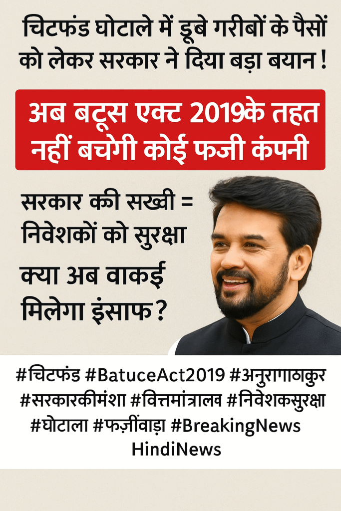 चिटफंड में डूबे पैसों को लेकर बड़ा बयान: गरीबों का एक भी पैसा नहीं डूबने देगी सरकार – अनुराग ठाकुर