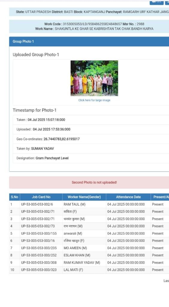 गजब का खेल चल रहा है मनरेगा योजना में। मनरेगा में फर्जी हाजिरी लागा कर मलाई काट रहे जिम्मेदार, अधिकारी मौन। मनरेगा में खेल! अलग नाम और फोटो से लगाई जा रही कई श्रमिकों की हाजिरी।