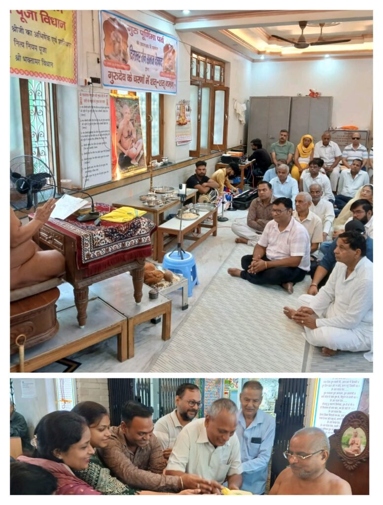गुरु पूर्णिमा पावन पर्व पर देवबन्द जैन समाज द्वारा श्री दिगंबर जैन पारसनाथ मंदिर सारगवाड़ा के प्रांगण में जैन धर्म के 24 तीर्थंकरो , आचार्य श्री 108 पुष्पदंत सागर जी महाराज व आचार्य श्री 108 अरुण सागर जी महाराज की पूजा अर्चना कर बहुत धूमधाम से मनाया। पूजा अर्चना से पूर्व श्री अंकित कुमार अविरल जैन (सिल्वर पैराडाइज फार्म हाउस/पालकी साड़ी जी) द्वारा आचार्य श्री 108 पुष्पदंत सागर जी महाराज के चित्र का अनावरण , दीप प्रज्वलित श्री महेश कुमार अजय कुमार संजय जैन (बजाज) , गुरु पाद पक्षालन श्री आकाश कुमार अभिषेक कुमार प्रखर जैन (होंडा प्राची मोटर्स) , शास्त्र भेंट श्री रविंद्र कुमार रजत जैन सजल जैन ने किया । आचार्य श्री 108 अरुण सागर जी महाराज ने प्रवचन में कहा कि जैन समाज में गुरु पूर्णिमा का विशेष महत्व है क्योंकि जैन धर्म में गुरुओं को ‘आचार्य’ या ‘मुनि’ कहा जाता है ,वे आध्यात्मिक मार्गदर्शक होते हैं। इस दिन जैन मंदिरों में विशेष पूजा ,अभिषेक और आरती की जाती है ,गुरुओं के प्रति अपनी श्रद्धा व्यक्त करने के लिए प्रवचन और धार्मिक कार्यक्रम आयोजित किए जाते हैं। इस दिन गुरुओं द्वारा दिए गए उपदेशो और शिक्षाओ का पालन करने का संकल्प लिया जाता है और अज्ञानता के अंधकार से ज्ञान के प्रकाश की ओर बढ़ने का संकल्प लिया जाता है। गुरु पूर्णिमा का त्योहार गुरु और शिष्य के बीच शाश्वत बंधन का प्रतीक है यह त्यौहार हमें अपने गुरुओं के प्रति कृतज्ञता व्यक्त करने और उनके द्वारा दिए गए ज्ञान और मार्गदर्शन का सम्मान करने का अवसर प्रदान करता है।
