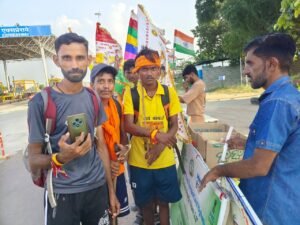 रामदेवरा जा रहे पैदल श्रद्धालुओं के हाथों में लगाए रेडियम बेल्ट,