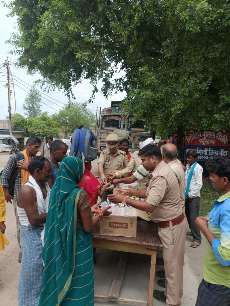 चित्रकूट कामदगिरि यात्रा में जा रहे श्रद्धालुओं के लिए खुरहंड चौकी प्रभारी यज्ञनारायण भार्गव ने मानवीय संवेदनाओं की मिसाल पेश की। यात्रा मार्ग से गुजर रहे श्रद्धालुओं को उन्होंने चौकी पर रुकवाकर बिस्कुट, नमकीन और पानी वितरित कराया। अचानक मिले इस सम्मान और सेवा से श्रद्धालु भावविभोर हो उठे और पुलिस के इस मानवीय चेहरे की जमकर सराहना की।