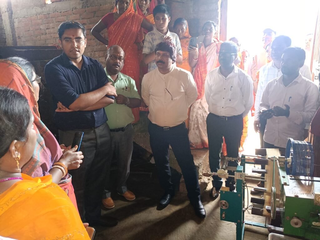 इस संवाद कार्यक्रम का उद्देश्य रेशम उत्पादन को बढ़ावा देना, सखी मंडल की आजीविका को सुदृढ़ करना और CFC (कॉमन फैसिलिटेशन सेंटर) के कार्यों को और प्रभावी बनाना था। कार्यक्रम के दौरान उप विकास आयुक्त महोदय ने CFC की पूरी प्रक्रिया का विस्तारपूर्वक अवलोकन किया और रेशम धागा उत्पादन से संबंधित मुद्दों पर दीदियों के साथ चर्चा की। उन्होंने उनकी समस्याओं को सुना और आजीविका बढ़ाने के लिए उपयोगी सुझाव दिए। साथ ही, उन्होंने दीदियों के घर जाकर धागा कटाई मशीन से धागा निकालने की प्रक्रिया को देखा और इसे उत्पादन वृद्धि का सशक्त साधन बताया।