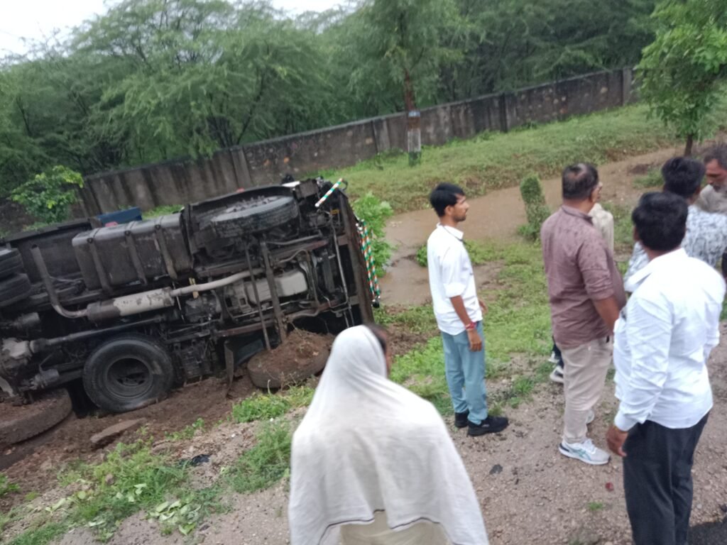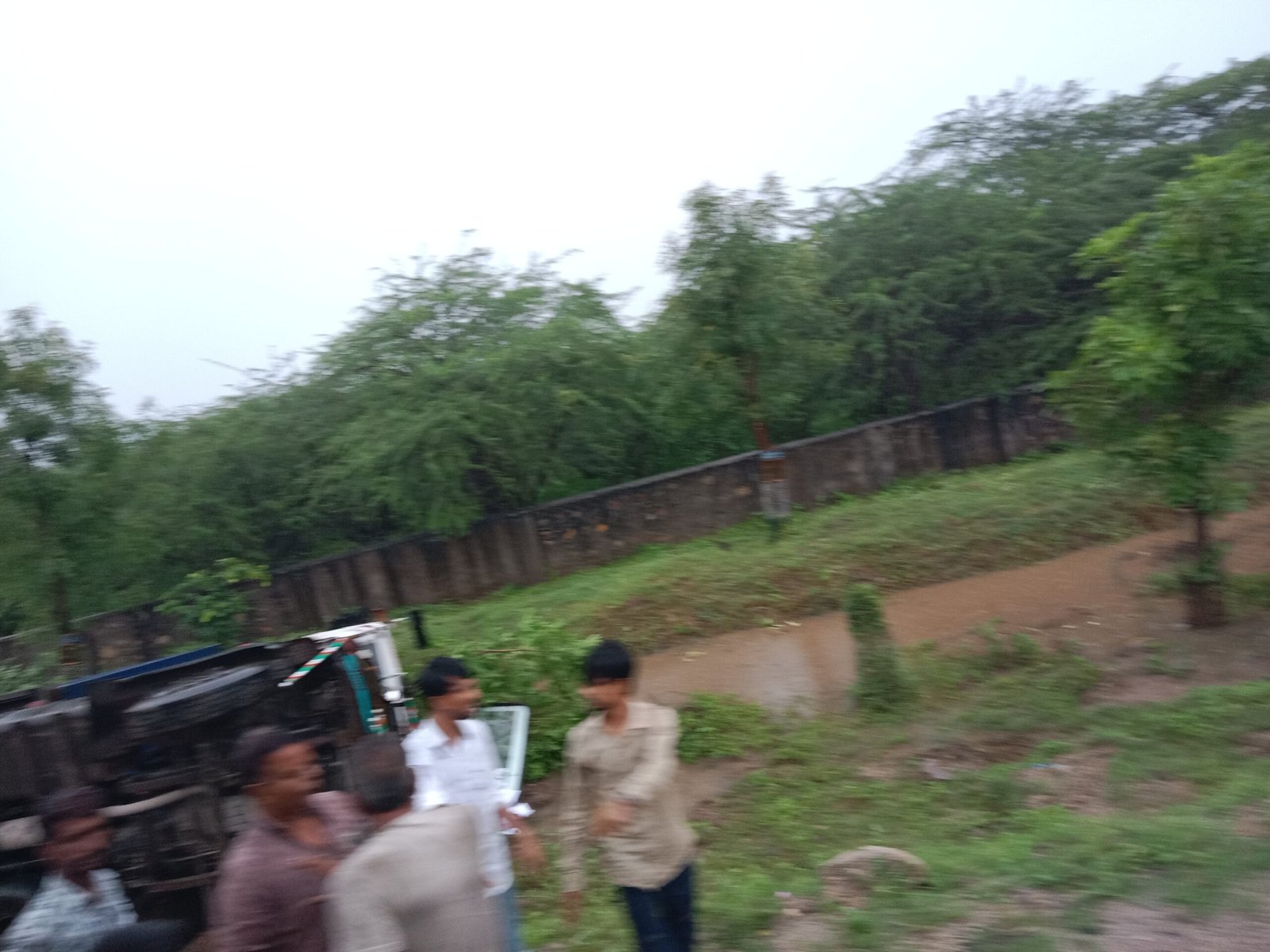 બ્રેઝા ગાડી ઓર કેન્ટીનર આપસમે એકસીડન્ટ થયો ને કે કારણ કે ગાડી પલટી ખાવી