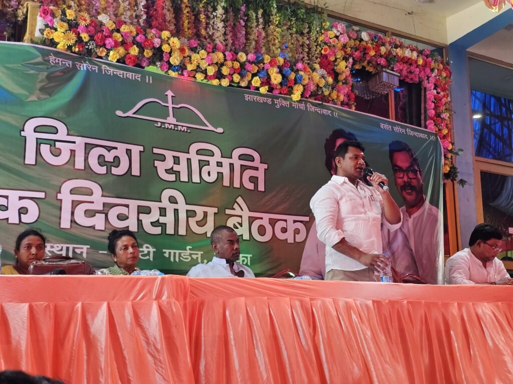 दुमका:दुमका सिटी गार्डन में झारखंड मुक्ति मोर्चा (झामुमो) जिला समिति द्वारा एक दिवसीय बैठक का आयोजन किया गया। बैठक की अध्यक्षता जिला अध्यक्ष शिव कुमार बास्की ने की। इस महत्वपूर्ण बैठक में संगठन को मजबूत करने,दस नंबर खाता ,बीएलए की तैयारी और “गुरुजी अंतिम जोहार यात्रा” जैसे अहम विषयों पर विस्तार से चर्चा की गई।बैठक में बतौर मुख्य अतिथि दुमका के लोकप्रिय विधायक माननीय बसंत सोरेन उपस्थित रहे। उनके साथ जामा विधायक डॉ. लुइस मरांडी, शिकारीपाड़ा विधायक आलोक कुमार सोरेन, जिला सचिव निशित वरन गोलदार, जिला जिला संगठन सचिव रवि यादव प्रवक्ता अब्दुश सलाम अंसारी, महिला मोर्चा की जिला अध्यक्ष सुनीता टुडू सहित झामुमो के सभी जिला पदाधिकारी, प्रखंड अध्यक्ष/सचिव एवं पार्टी के सक्रिय कार्यकर्ता बड़ी संख्या में मौजूद रहे।बैठक का उद्देश्य आगामी कार्यक्रमों की रणनीति तय करना, संगठन की जमीनी मजबूती को बढ़ाना और पार्टी की विचारधारा को जन-जन तक पहुंचाने हेतु आगामी गुरुजी अंतिम जोहार यात्रा को सफल बनाना रहा।