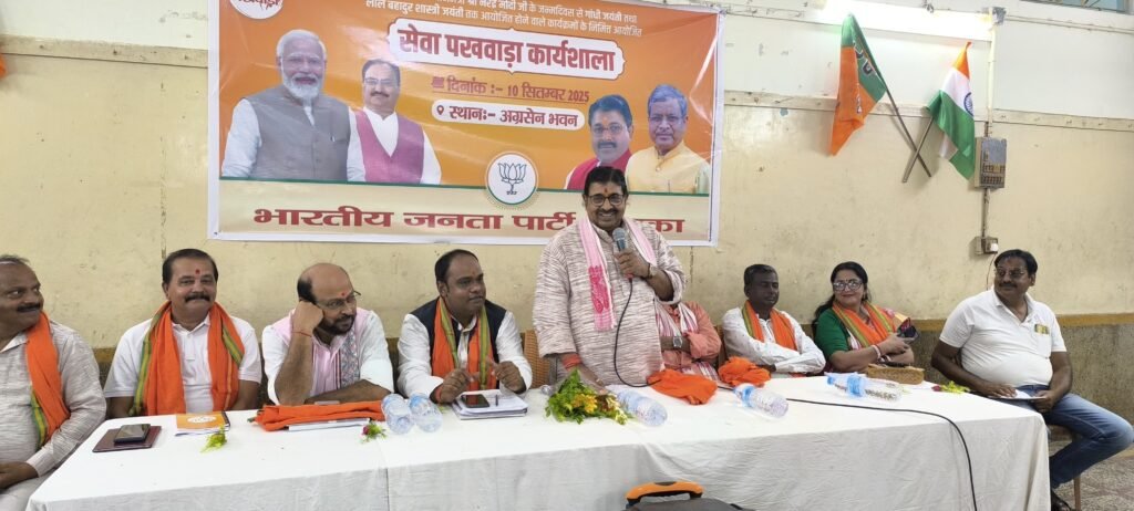 दुमका:भारतीय जनता पार्टी दुमका जिला इकाई की ओर से आगामी 17 सितम्बर से 2 अक्टूबर तक चलने वाले सेवा पखवाड़ा कार्यक्रम की तैयारी को लेकर बुधवार को दुमका के अग्रसेन भवन में कार्यशाला का आयोजन किया गया। कार्यक्रम की अध्यक्षता भाजपा जिलाध्यक्ष गौरवकांत ने की।कार्यशाला में पूर्व सांसद सह भाजपा कार्यकारी प्रदेश अध्यक्ष रविंद्र राय मुख्य अतिथि के रूप में उपस्थित रहे। इस अवसर पर पूर्व प्रदेश अध्यक्ष सह पूर्व सांसद अभयकांत प्रसाद,पूर्व सांसद सुनील सोरेन,जिला प्रभारी संजीव जजवाड़े एवं प्रदेश मंत्री रविकांत मिश्रा,पूर्व जिलाध्यक्ष निवास मंडल,प्रदेश कार्यसमिति सदस्य सुरेश मुर्मू समेत अनेक पदाधिकारी मौजूद रहे।कार्यशाला के उपरांत प्रेस वार्ता को संबोधित करते हुए श्री रविंद्र राय ने कहा कि प्रधानमंत्री नरेंद्र मोदी के नेतृत्व में केंद्र सरकार समाज के अंतिम पायदान तक सेवा पहुँचाने के संकल्प के साथ कार्य कर रही है। इसी कड़ी में GST 2.0 आम जनता और व्यापारियों के लिए पारदर्शी व सरल व्यवस्था लेकर आया है, जिससे आर्थिक गतिविधियों को नई गति मिलेगी।उन्होंने झामुमो सरकार पर करारा प्रहार करते हुए कहा –