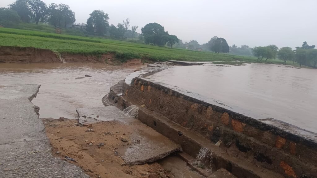 विंढमगंज सोनभद्र(राकेश कुमार कन्नौजिया)_स्थानीय थाना क्षेत्र के फुलवार गांव में जोरूखाड़ से महुअरिया सुईचट्टान को जोड़ने वाला पीसीसी संपर्क मार्ग मालिया नदी के तेज पानी के बहाव में टूट गया। बारिश और नदी के बढ़ते जलस्तर के चलते मार्ग का एक हिस्सा पूरी तरह बह गया है, जिससे गांवों के बीच यातायात पूर्णतः बाधित हो गया है। फुलवार, जोरूखाड़ और महुअरिया के लोगों को बाजार, स्कूल और अस्पताल जाने में भारी दिक्कतों का सामना करना पड़ रहा है।पानी के तेज बहाव से नदी किनारे स्थित खेतों का बड़ा हिस्सा भी कट गया। कई एकड़ में खड़ी धान की फसल पानी में बहकर नष्ट हो गई। किसानों का कहना है कि उन्होंने बड़ी मेहनत से रोपाई की थी, लेकिन अब सारी मेहनत पर पानी फिर गया।फुलवार गांव के किसान संतोष कुमार यादव ने बताया कि “नदी का बहाव इतना तेज था कि कुछ ही घंटों में पूरा खेत पानी में समा गया। मिट्टी कटकर बह जाने से अब दोबारा खेती करना भी मुश्किल हो जाएगा।” इसी तरह किसान विनोद राय ने कहा कि “फसल के साथ-साथ सड़क टूटने से अब हम अपने उत्पाद या जरूरत की चीजें बाजार तक नहीं ले जा पा रहे हैं, जिससे आर्थिक संकट खड़ा हो गया है।”घटना की जानकारी मिलने पर ग्राम प्रधान जोरूखाड़ विमल यादव मौके पर पहुंचे और स्थिति का जायजा लिया। उन्होंने कहा कि “नदी के तेज प्रवाह से सड़क और किसानों दोनों को भारी नुकसान हुआ है। प्रशासन को तत्काल इस मार्ग की मरम्मत करानी चाहिए एवं प्रभावित किसानों को उचित मुआवजा दिया जाना चाहिए।”ग्राम प्रधान ने अधिकारियों से जल्द सर्वे कर क्षतिग्रस्त सड़क को दुरुस्त करने और राहत राशि जारी करने की मांग की है।