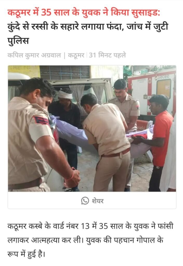 35 वर्षीय युवक ने फांसी लगाकर करली जीवनलीला समाप्त