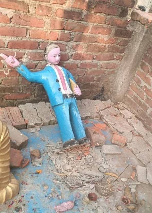 डुमरियागंज जनपद सिद्धार्थ नगर के ग्राम तेलियाडीह में सूचना प्राप्त हुई । डॉक्टर भीमराव अंबेडकर जी की मूर्ति क्षतिग्रस्त हो गई है ।इस सूचना पर डुमरियागंज पुलिस के द्वारा मौके पर पहुंचकर जांच पड़ताल किया गया तो पाया गया कि अंबेडकर जी की मूर्ति एवं भगवान बुद्ध की मूर्ति गांव के बाहर खुले स्थान पर लगाई गई है ।